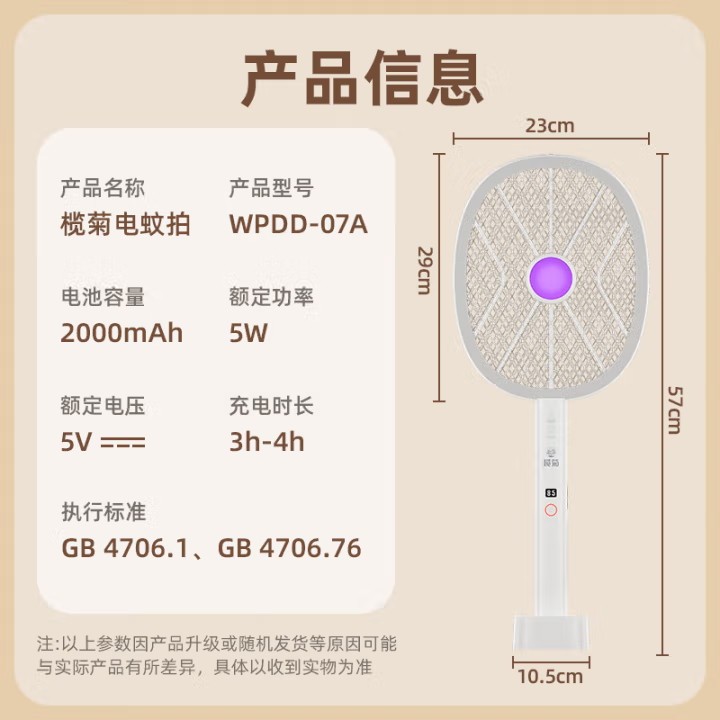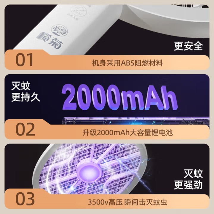 榄菊电蚊拍充电式家用强力锂电池灭蚊灯二合一驱蚊打苍蝇拍电器