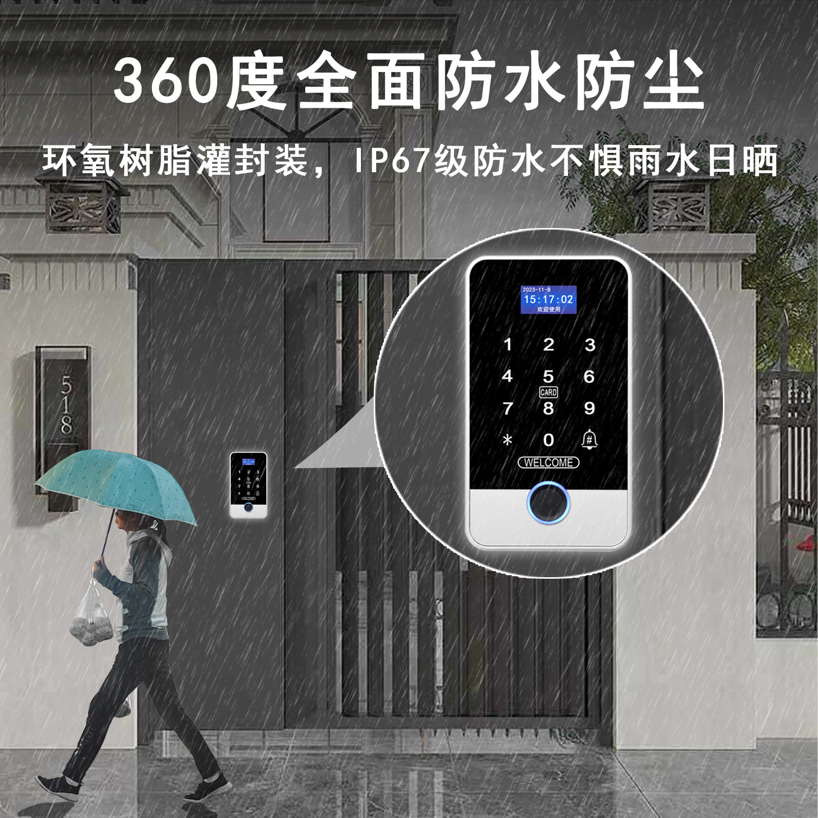 室外防水小程序APP指纹门禁一体机远程开锁临时密码刷卡解锁