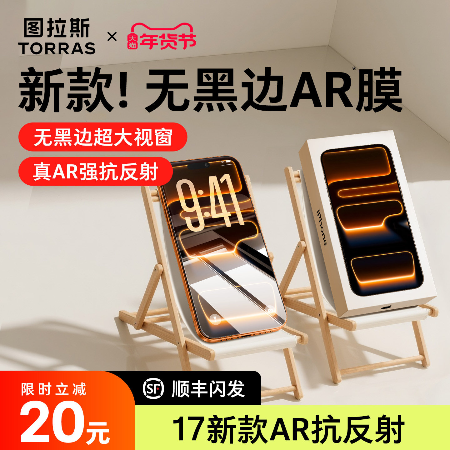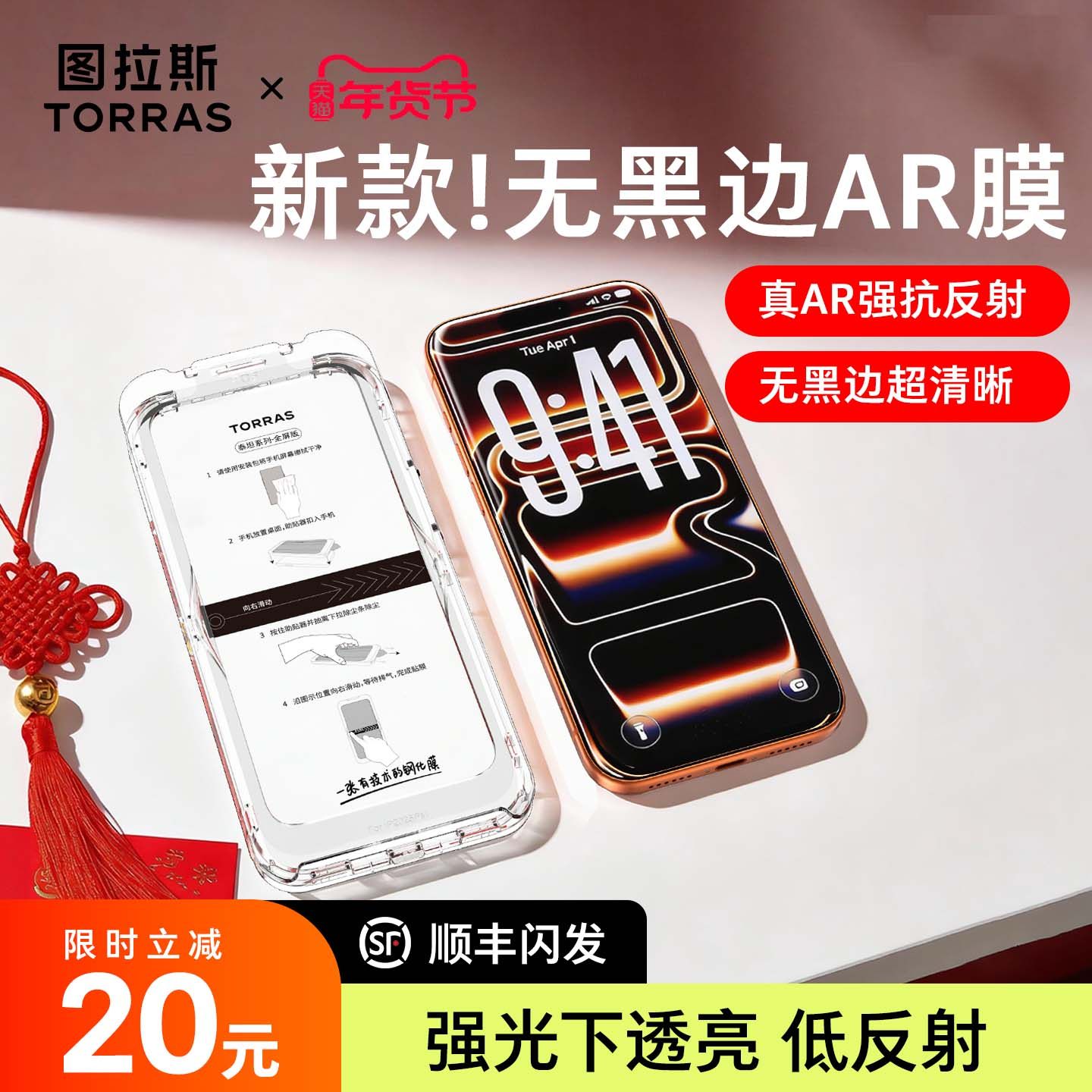 图拉斯无界AR膜抗反射适用苹果17ProMax手机iPhone16pro钢化贴膜15保护air无黑边p新款ip屏保增透pm官无尘仓