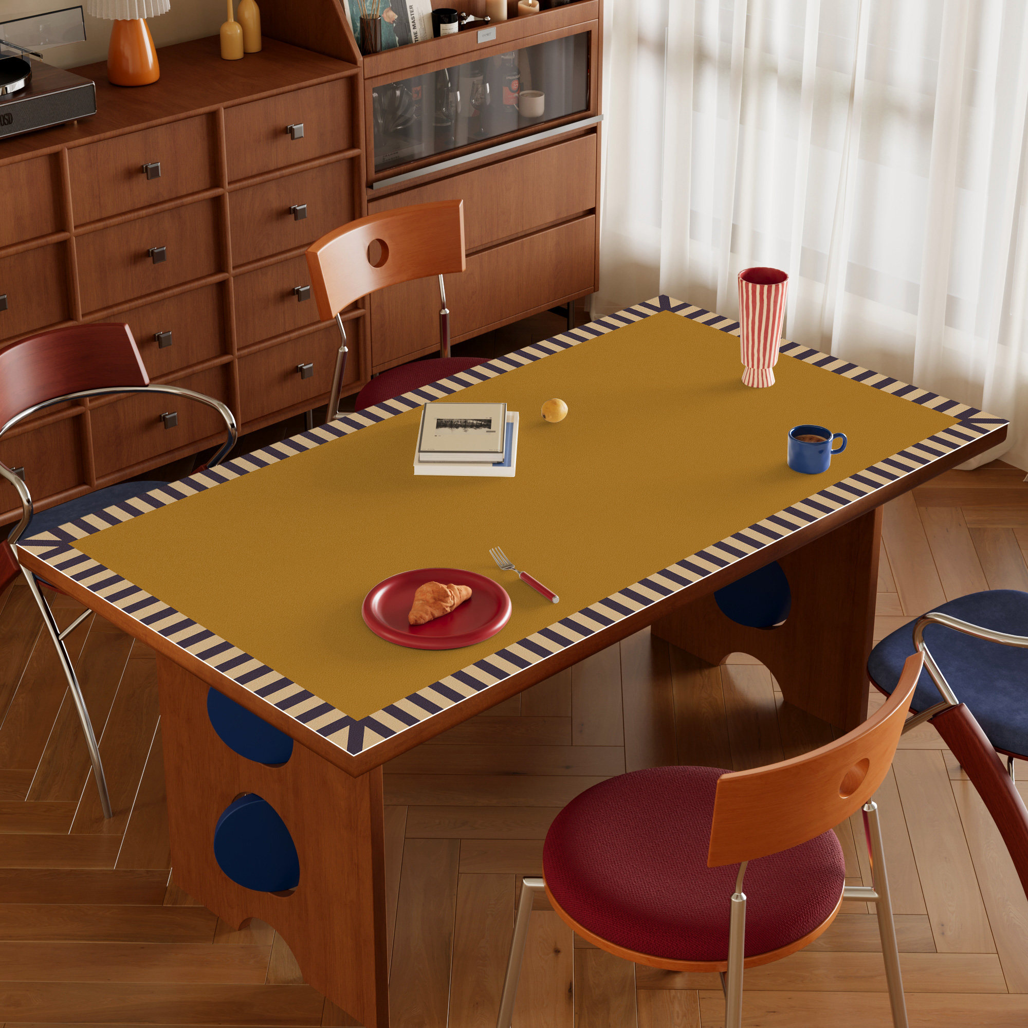中古风包豪斯皮革餐桌垫高级感桌面保护垫防水防油免洗隔热茶几垫