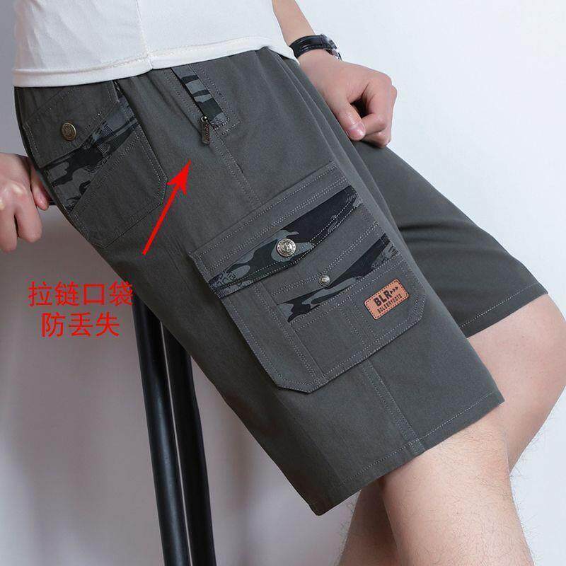 爸爸夏装短裤中老年男士五分裤子纯棉工装裤中年人夏天大裤衩薄款