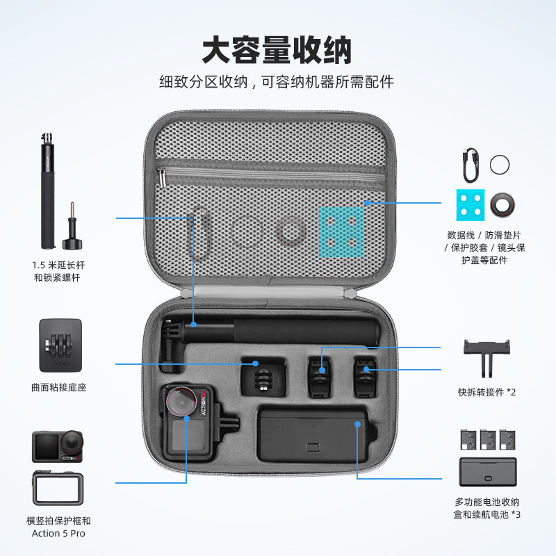 适用于大疆Action5Pro运动相机收纳包osmo action3/4户外便携收纳盒手提包单肩斜挎背包相机收纳配件