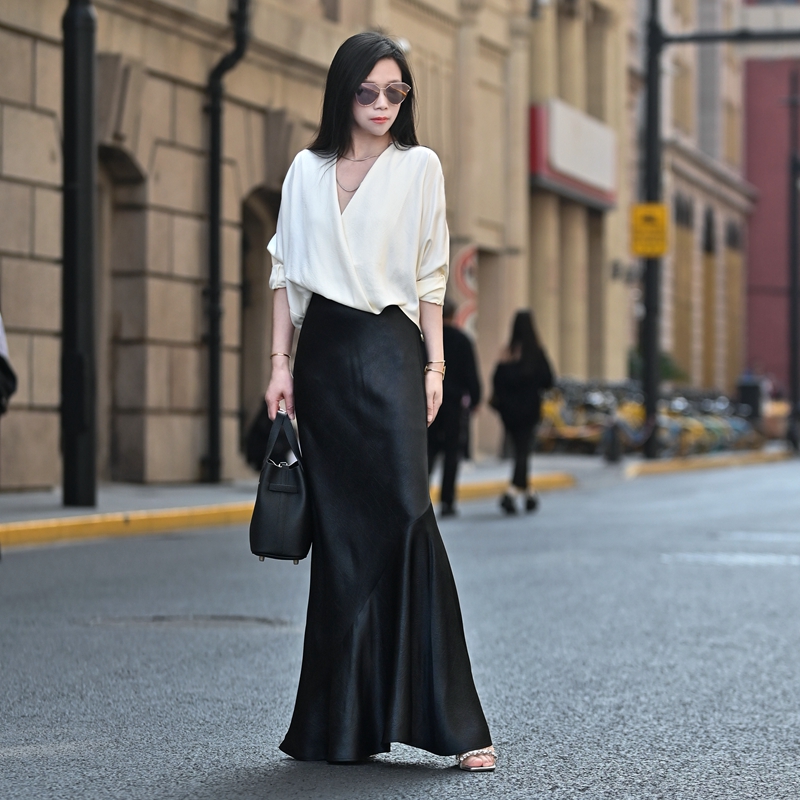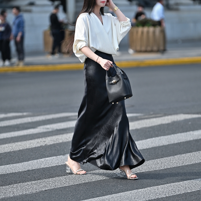 2025春夏新款原创醋酸缎肌理感气质女士半身裙A字半裙长裙鱼尾裙