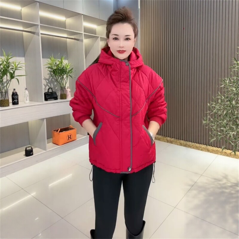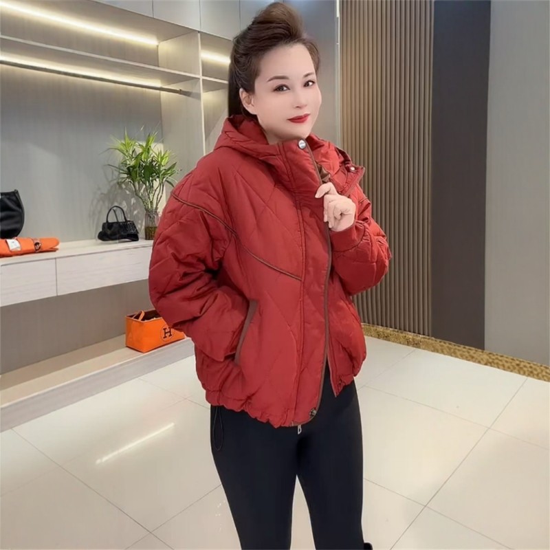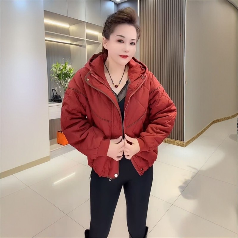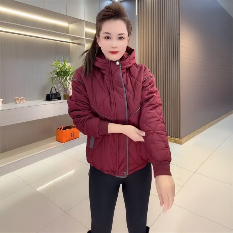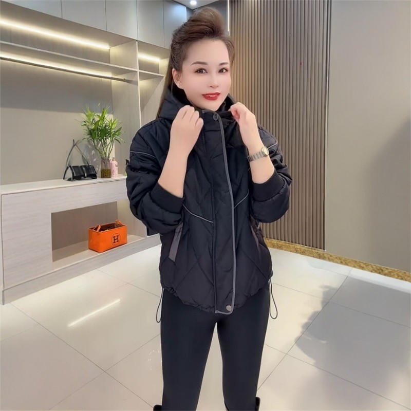 2025秋冬款女士二棉服宽松遮肚时尚洋气百搭减龄拉链连帽保暖棉衣