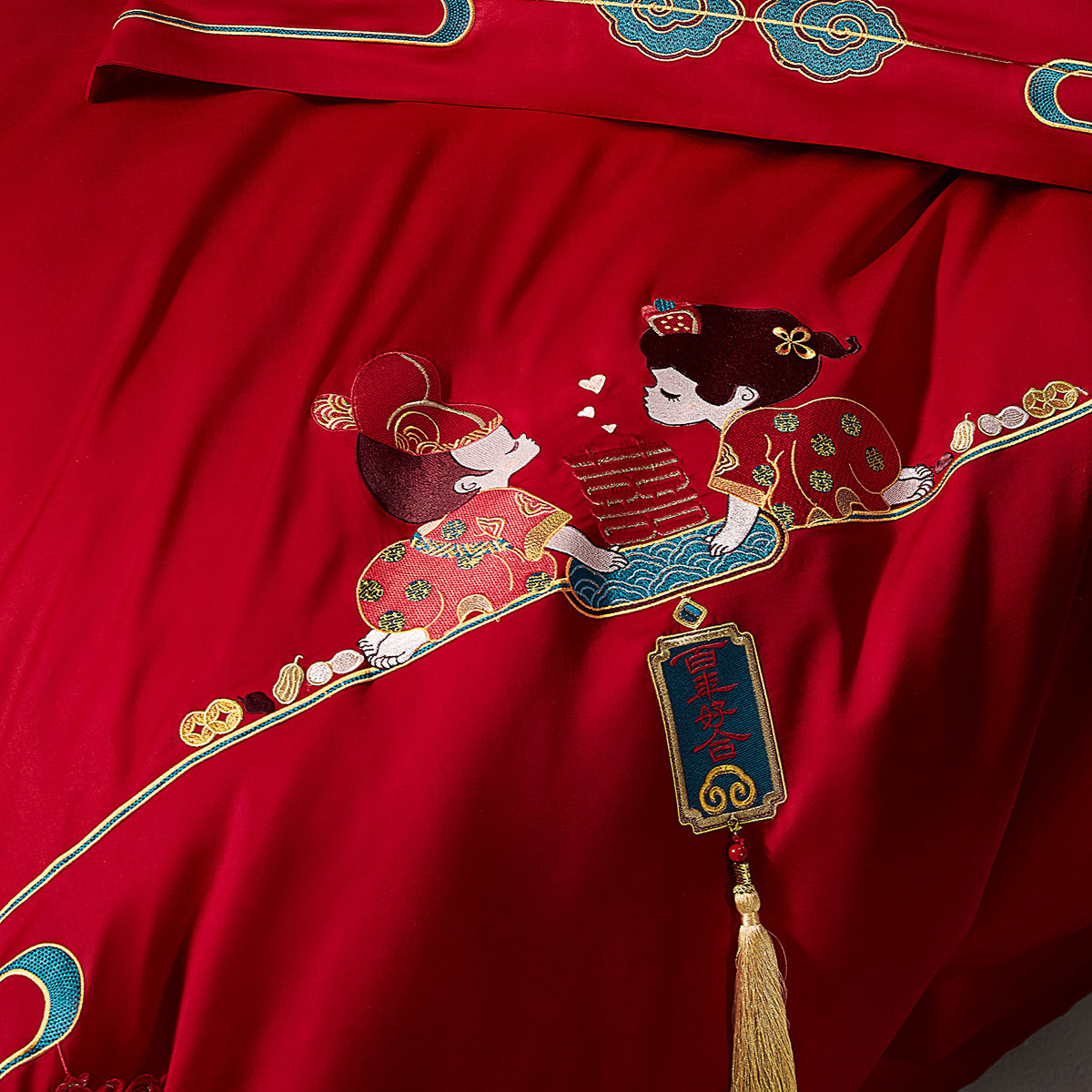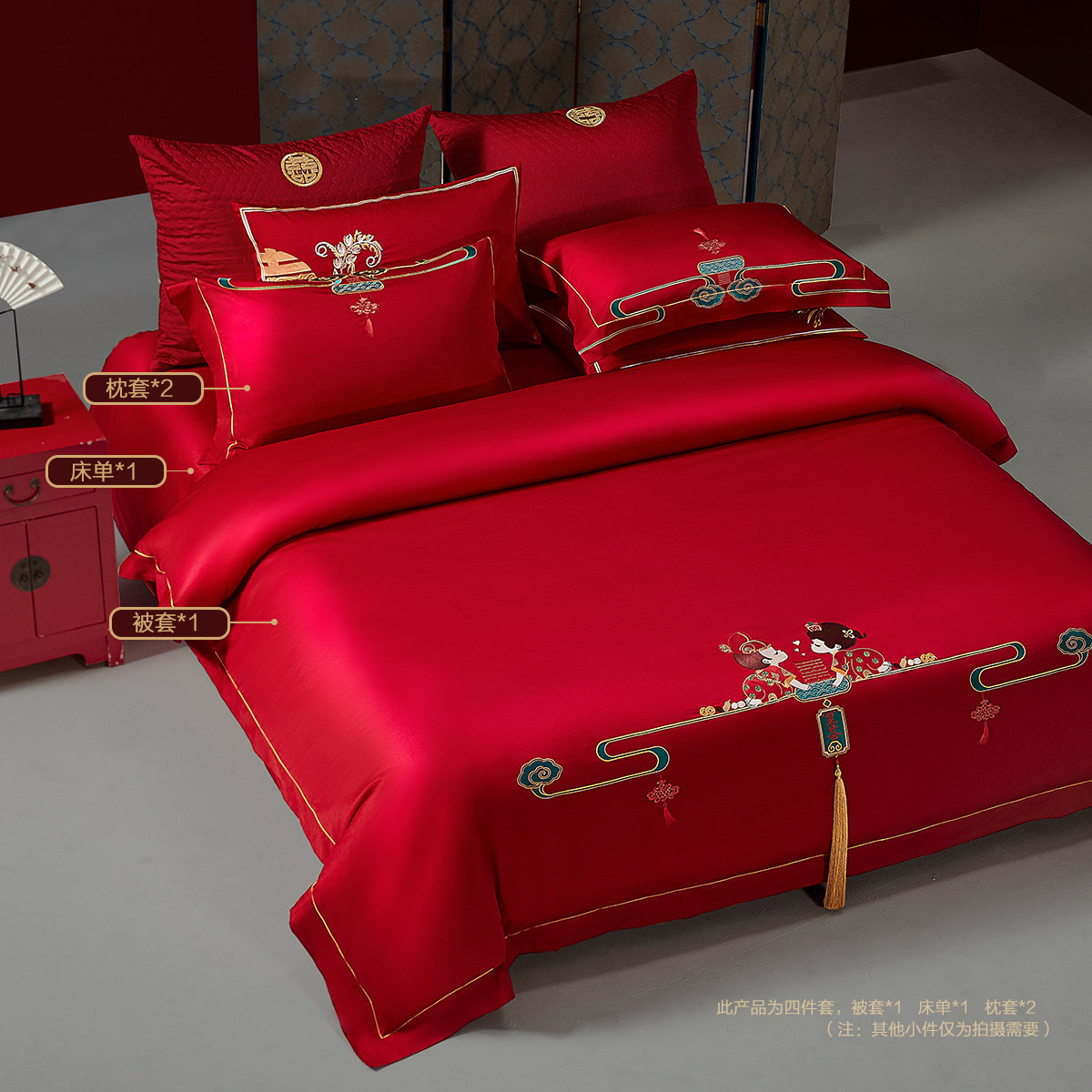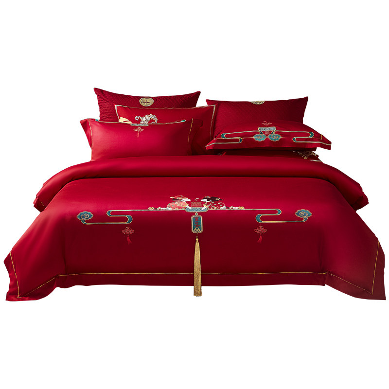 水星家纺中式结婚四件套60S长绒棉全棉婚庆床品套件喜庆陪嫁