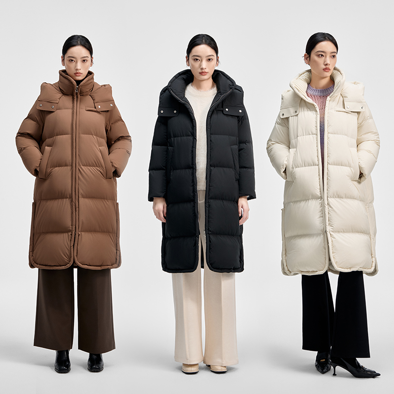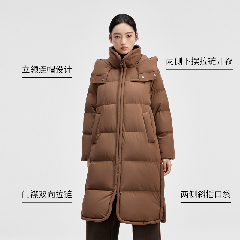 千仞岗2024冬季新款长款羽绒服纯色简约时尚宽松运动休闲保暖外套