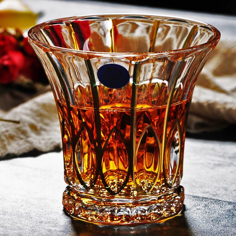 法国高档水晶玻璃镀金家用轻奢大号威士忌酒杯四方杯洋酒杯烈酒杯