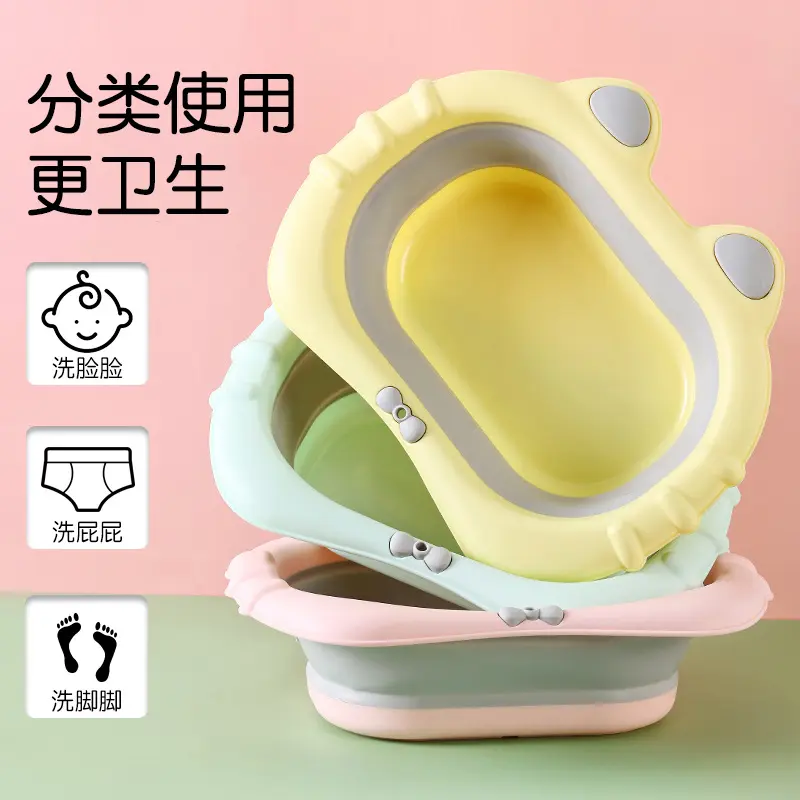 婴儿折叠脸盆宝宝洗脸盆新生儿用品儿童卡通PP盆脚盆小孩小脸盆