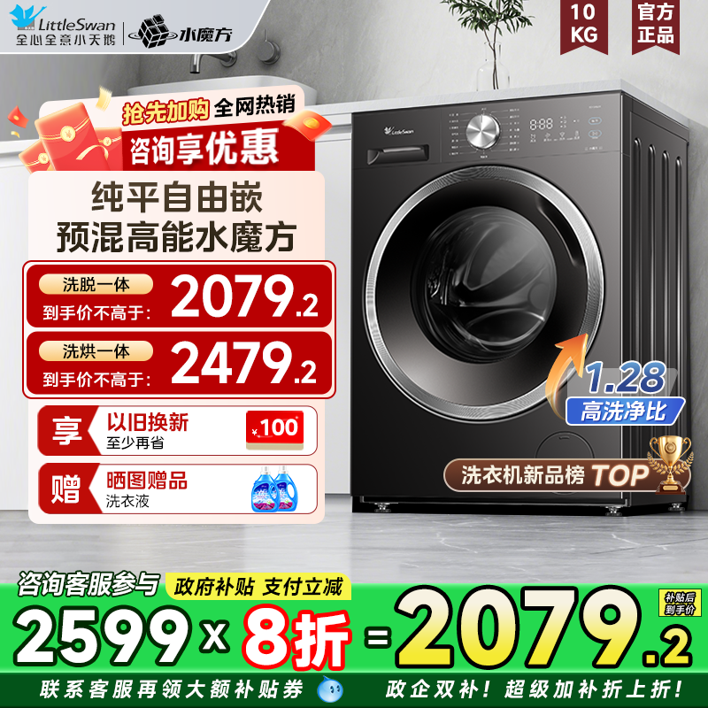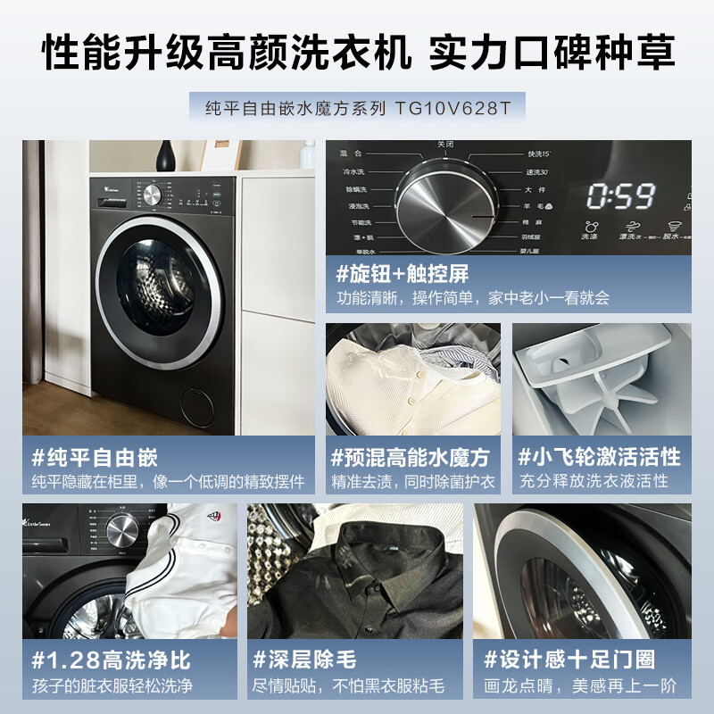 小天鹅洗衣机TD10V628T全自动家用滚筒10公斤水魔方洗烘一体628P