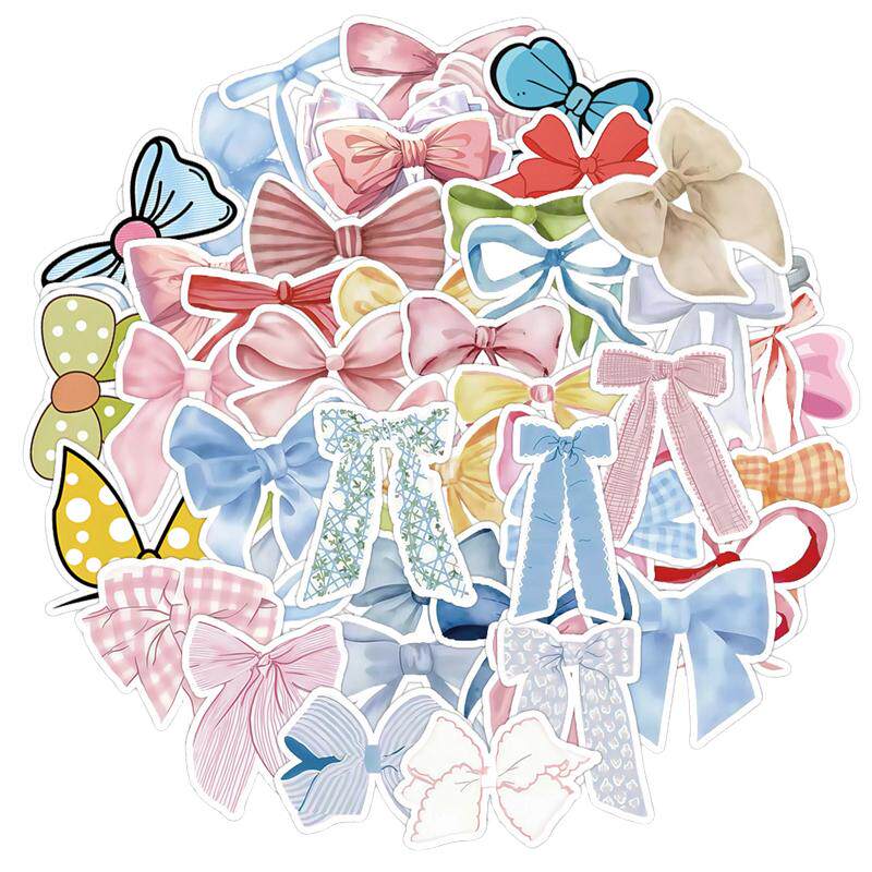 50张ins风丝带蝴蝶结贴纸少女心多巴胺炫彩贴纸DIY手机壳笔记本行李箱冰箱平板电脑键盘电表箱水杯镜面遮丑贴