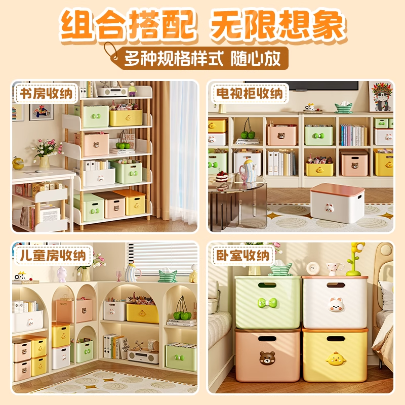 新款桌面收纳盒带盖长方形客厅零食玩具杂物置物筐整理箱储物箱子