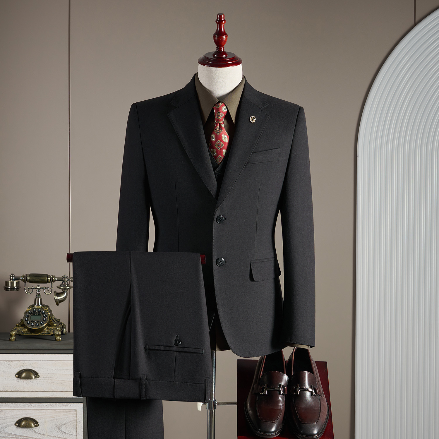 皮尔卡丹羊毛西服套装男士商务休闲韩版修身大码职业正装新郎结婚