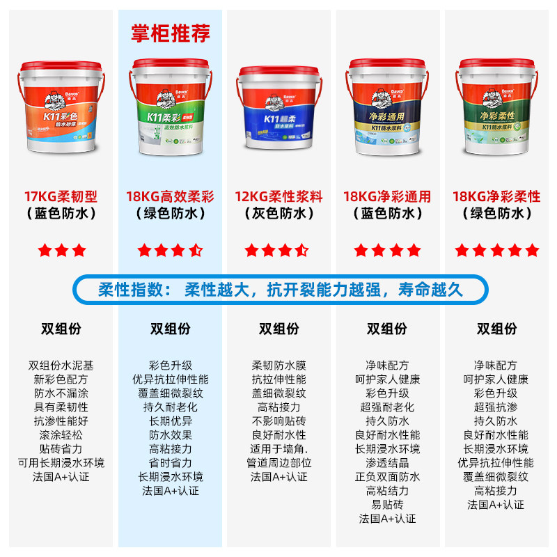 德高防水涂料卫生间屋顶厨房阳台室内材料内外墙蓝色补漏K11防水