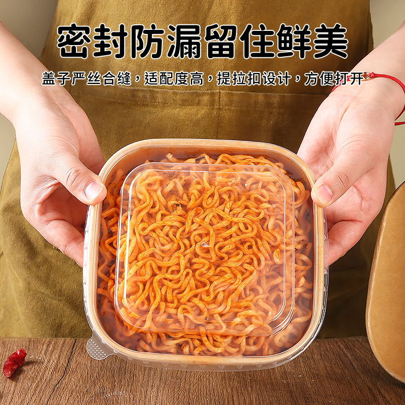 一次性泡面碗火鸡面打包盒方形方便面饭碗饭盒餐盒牛皮纸野餐纸碗