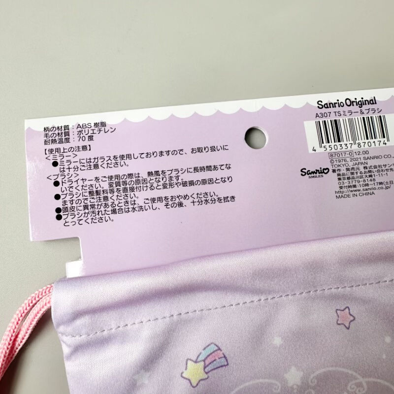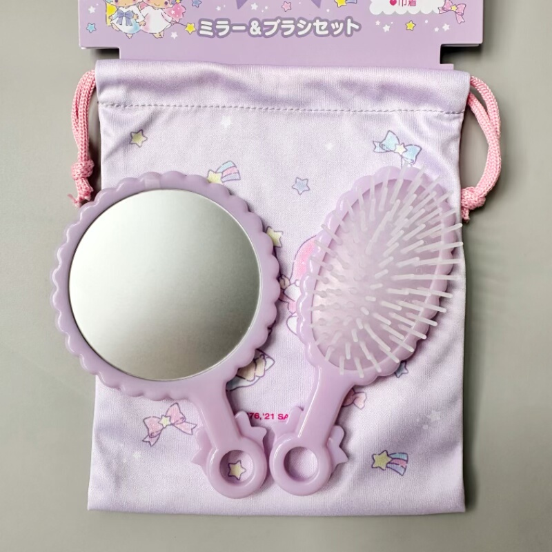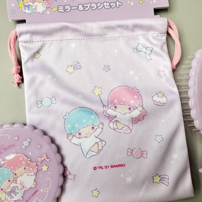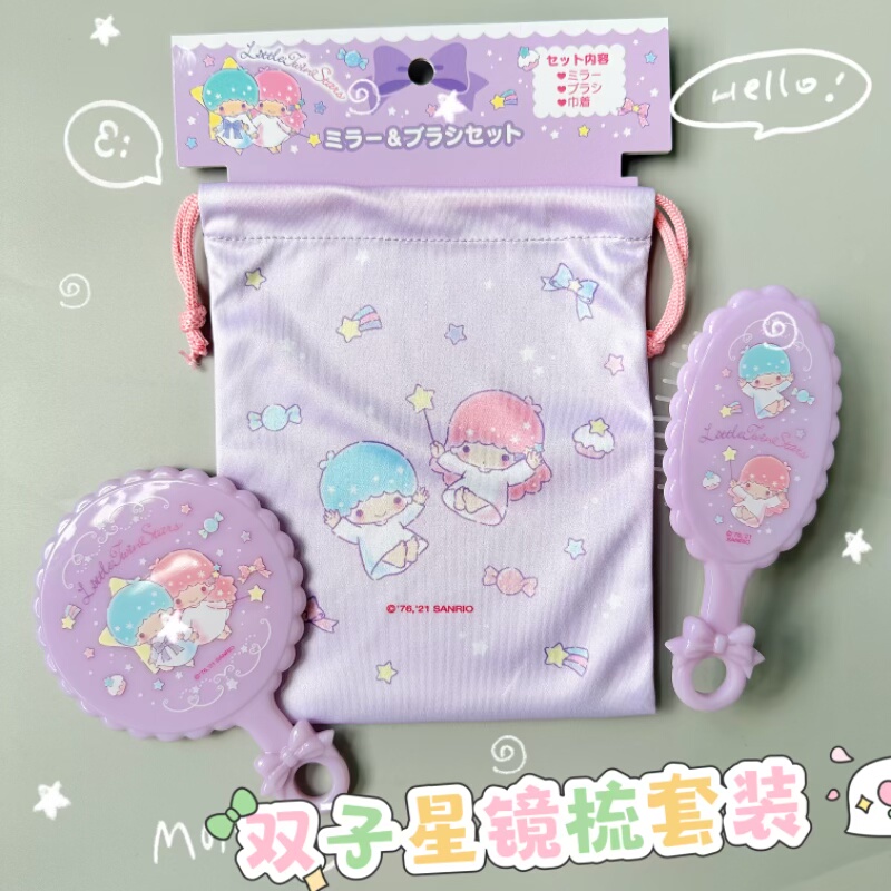 日本正版三丽鸥双子星梳子化妆小镜子带收纳袋套装小巧便携
