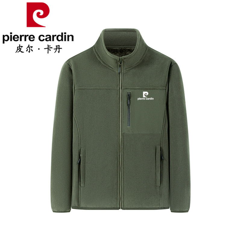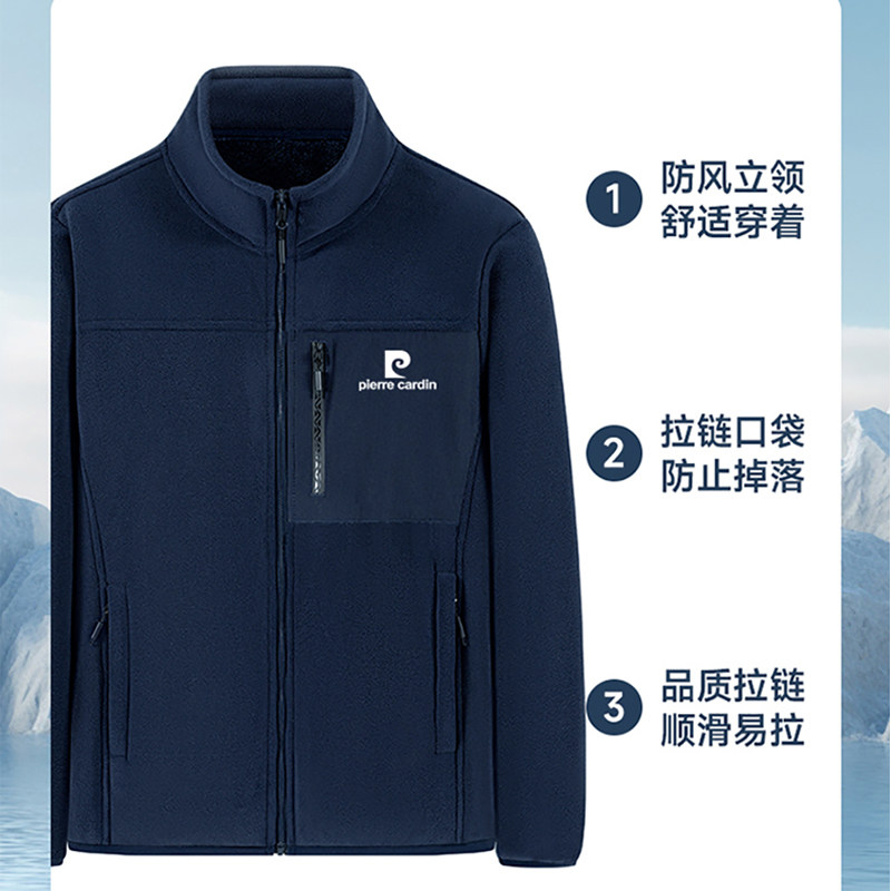 皮尔卡丹爸爸装加绒保暖立领夹克外套男秋冬休闲时尚双面绒抓绒衣