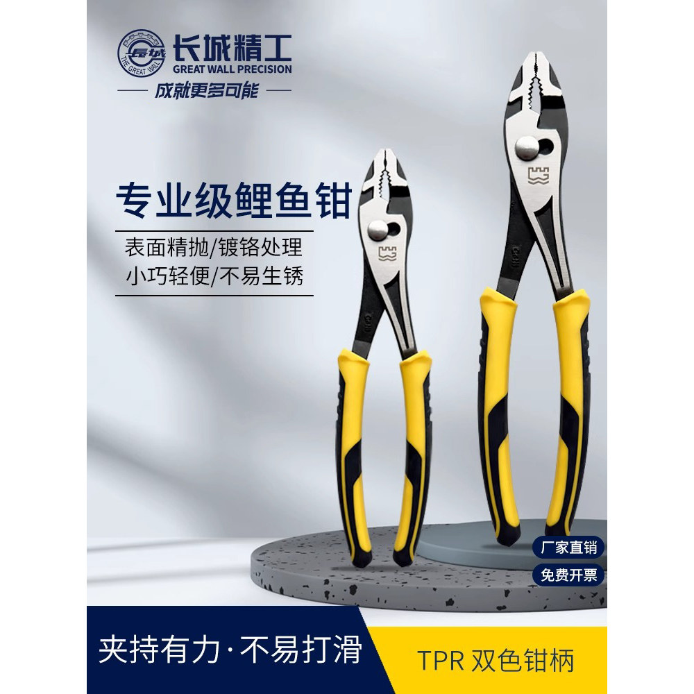 长城精工鲤鱼钳子多功能汽修水管夹钳工具鱼嘴钳子鱼尾钳200mm8寸