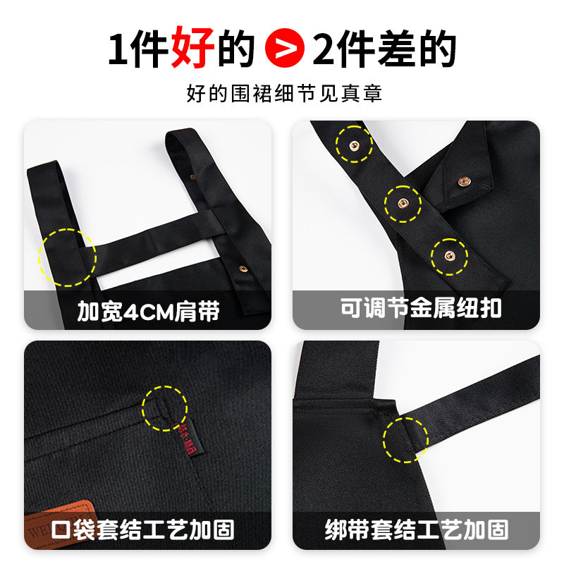 可调节防水防油围裙厨房奶茶店定制logo印字餐饮专用工装呢工作服