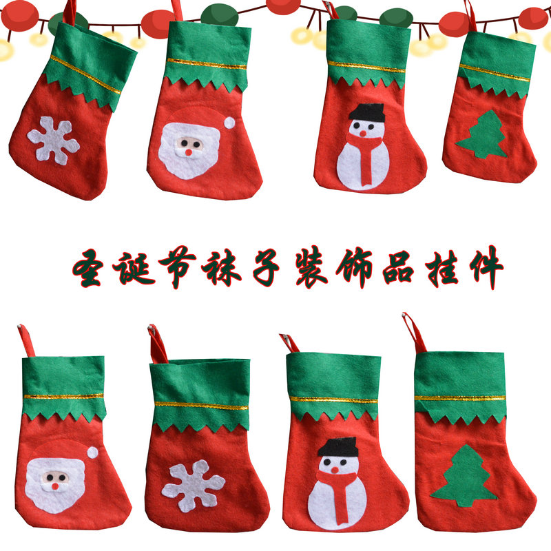 圣诞节场景装饰道具 无纺布贴画 圣诞节袜子圣诞树挂件平安夜礼品