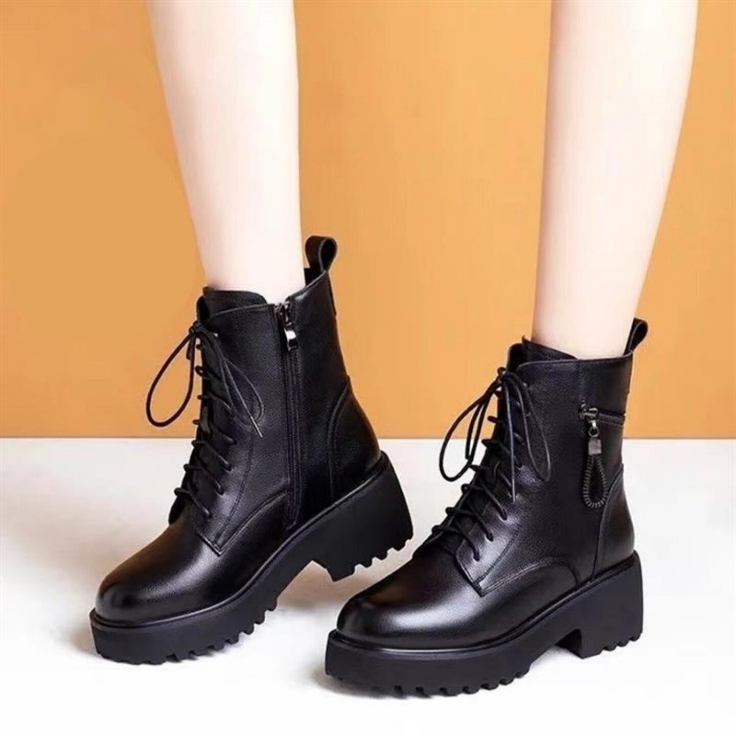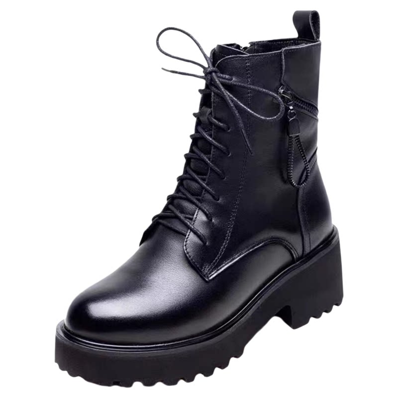 品牌特价真皮马丁靴女2025冬季新款时尚粗跟雪地靴加绒保暖小皮靴