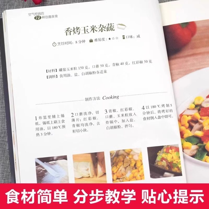 空气炸锅的72种创意美食正版用空气炸锅专用食谱书轻松做创意美食菜谱食谱书籍大全家常菜菜谱大全养生烹饪菜单空气炸锅专用食谱书
