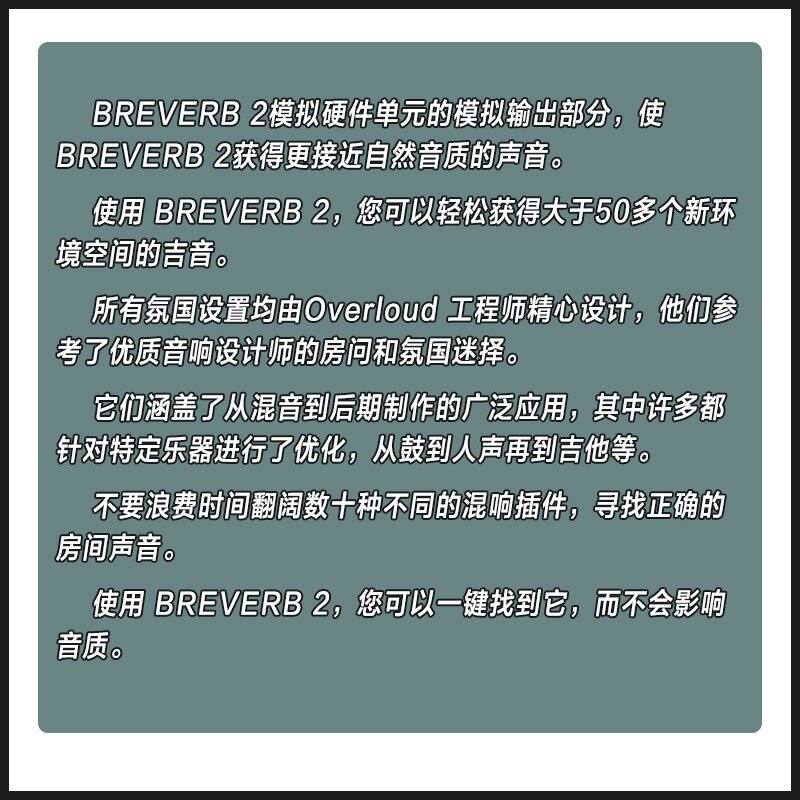 Overloud Breverb 2 惊艳的混响效果器编曲音乐混音制作插件