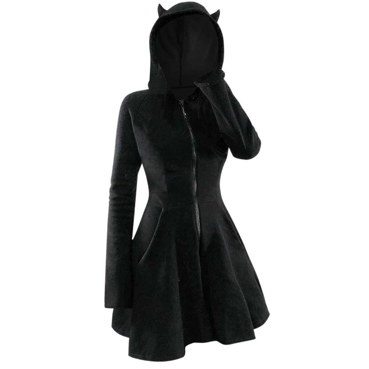 欧美拼接女士哥特风连帽长袖金丝绒猫耳修身连衣裙礼服大码女装