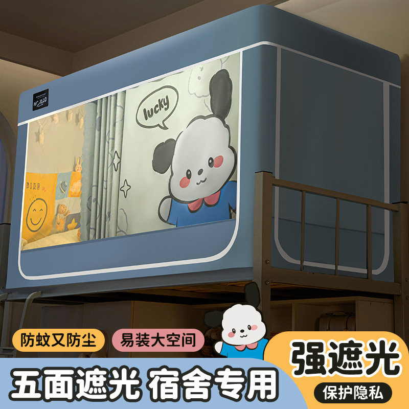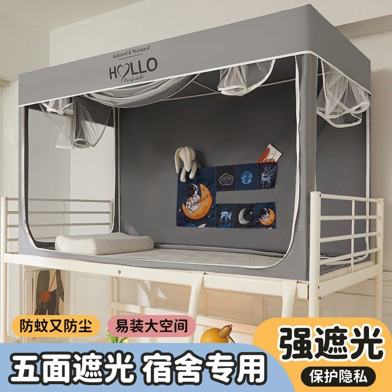 强遮光学生蚊帐床幔加密单人宿舍上下床防尘隐私床帘伸缩支架蚊帐