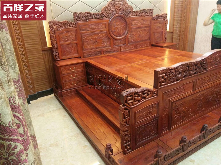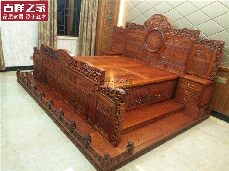 缅甸花梨 大果紫檀大床 拔步床红木实木住宅家具