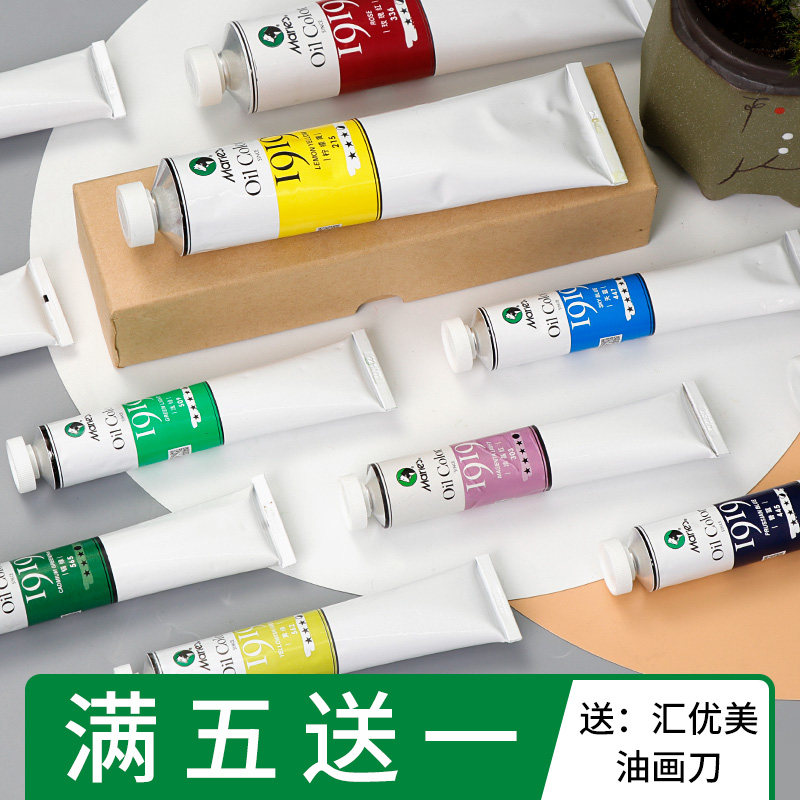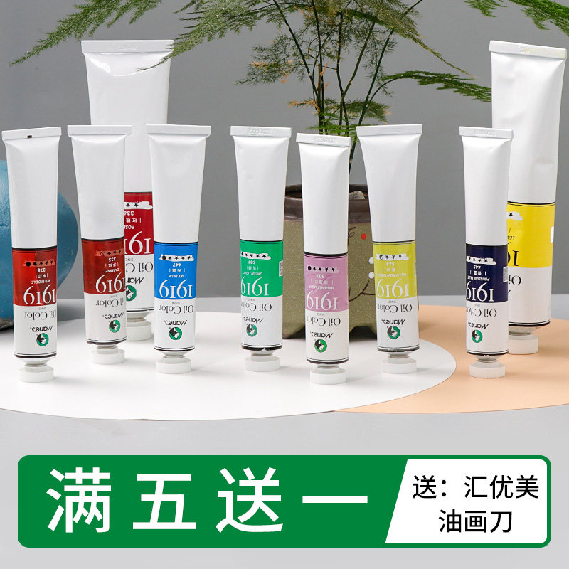上海马利油画颜料1919古典半透明罩染慢干油彩50/170ML初学者荧光桃红淡品红油性媒介画架写生箱画框工具套装