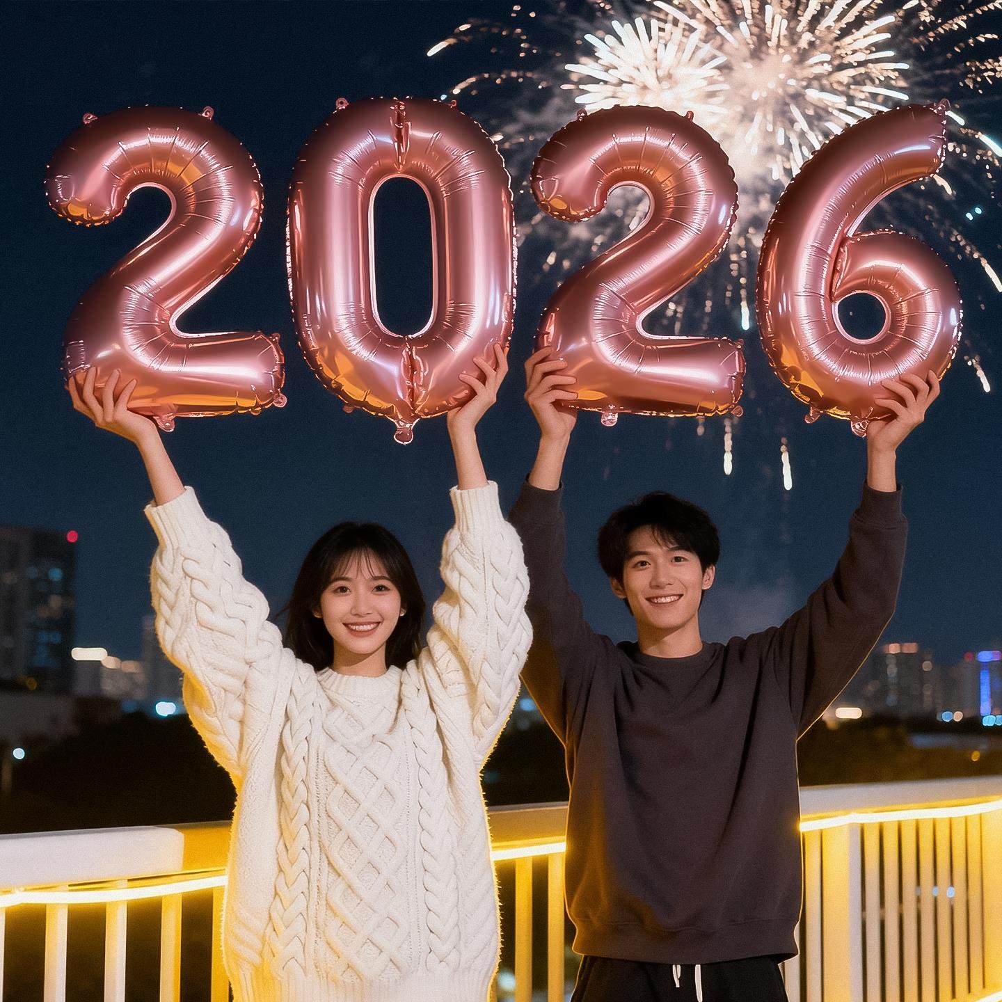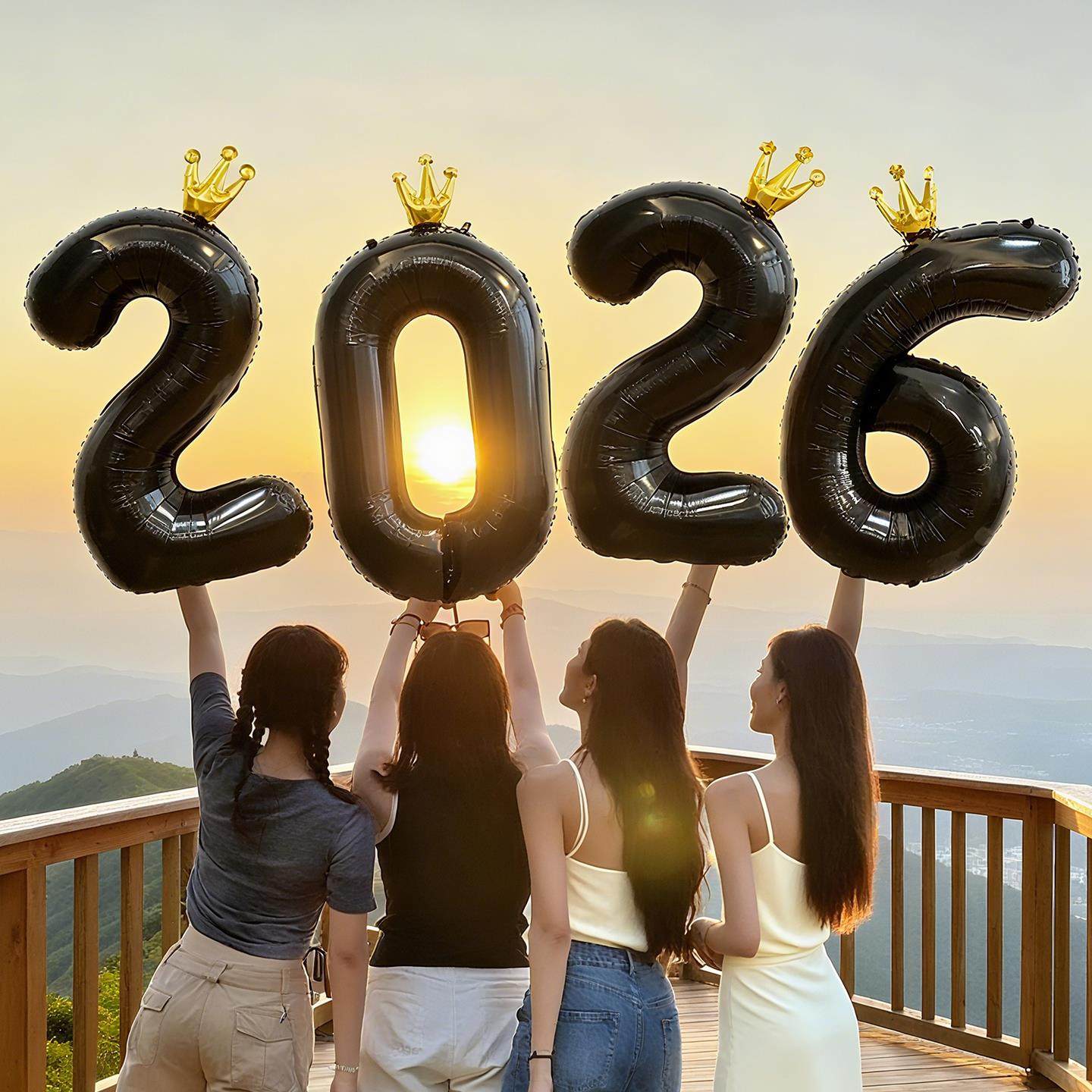 新年装饰元旦跨年夜2026红色数字气球过马年春节氛围手持拍照道具