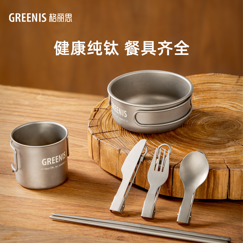 格丽思greenis纯钛食品级便携折叠筷叉勺家用餐饮具套装高档精致