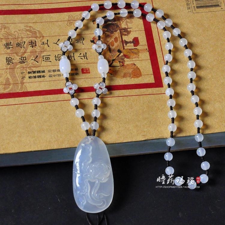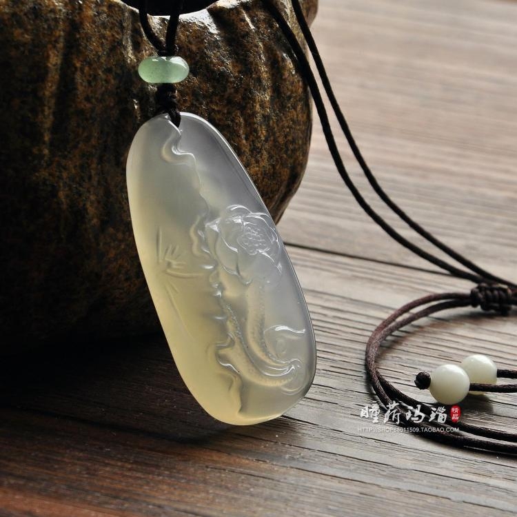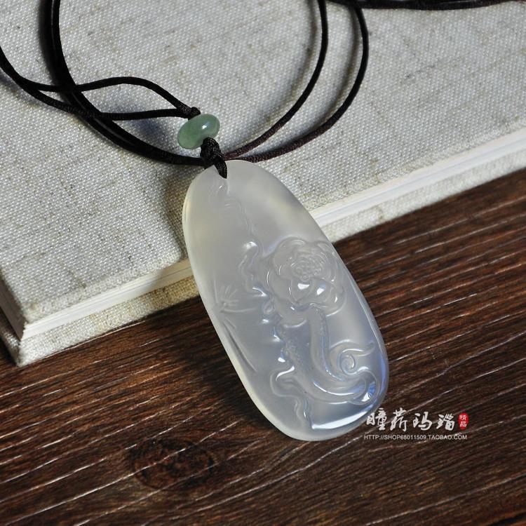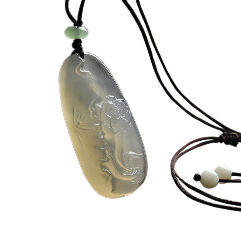 天然玛瑙荷叶莲花吊坠冰种玉髓荷花挂件男女款玉石毛衣链百搭项链