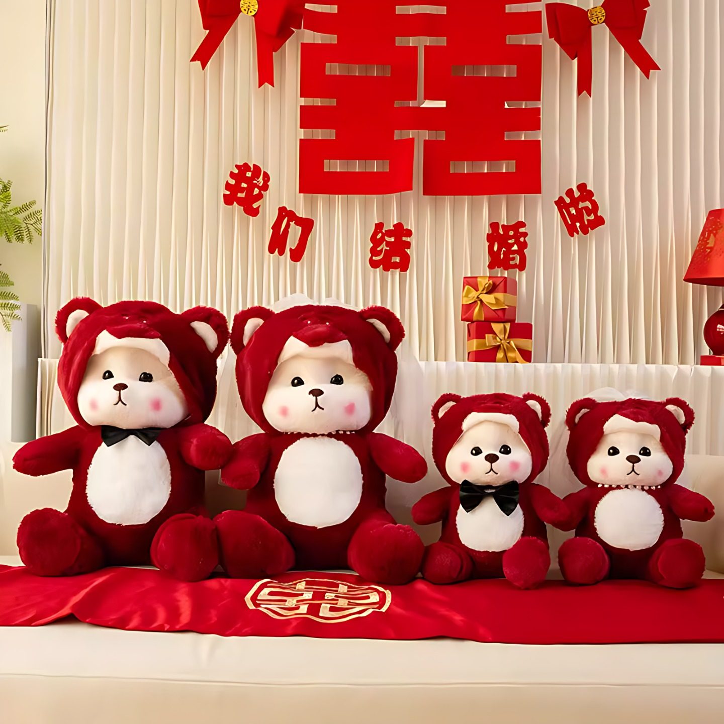 高档新婚压床喜娃娃娃一整套红色毛绒公仔摆件婚庆用品礼物送新人