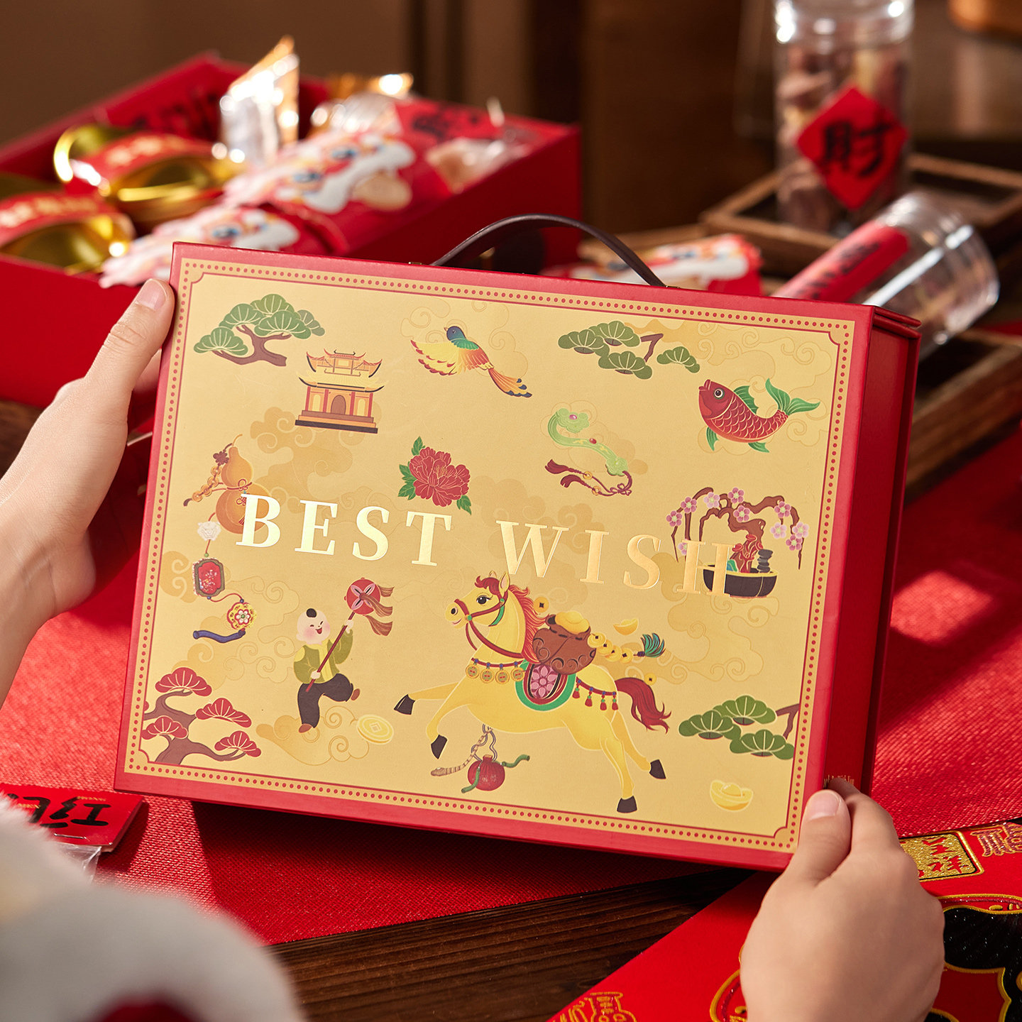 新年礼盒包装盒空盒2026年马年新年手提翻盖盒年货坚果零食礼盒子
