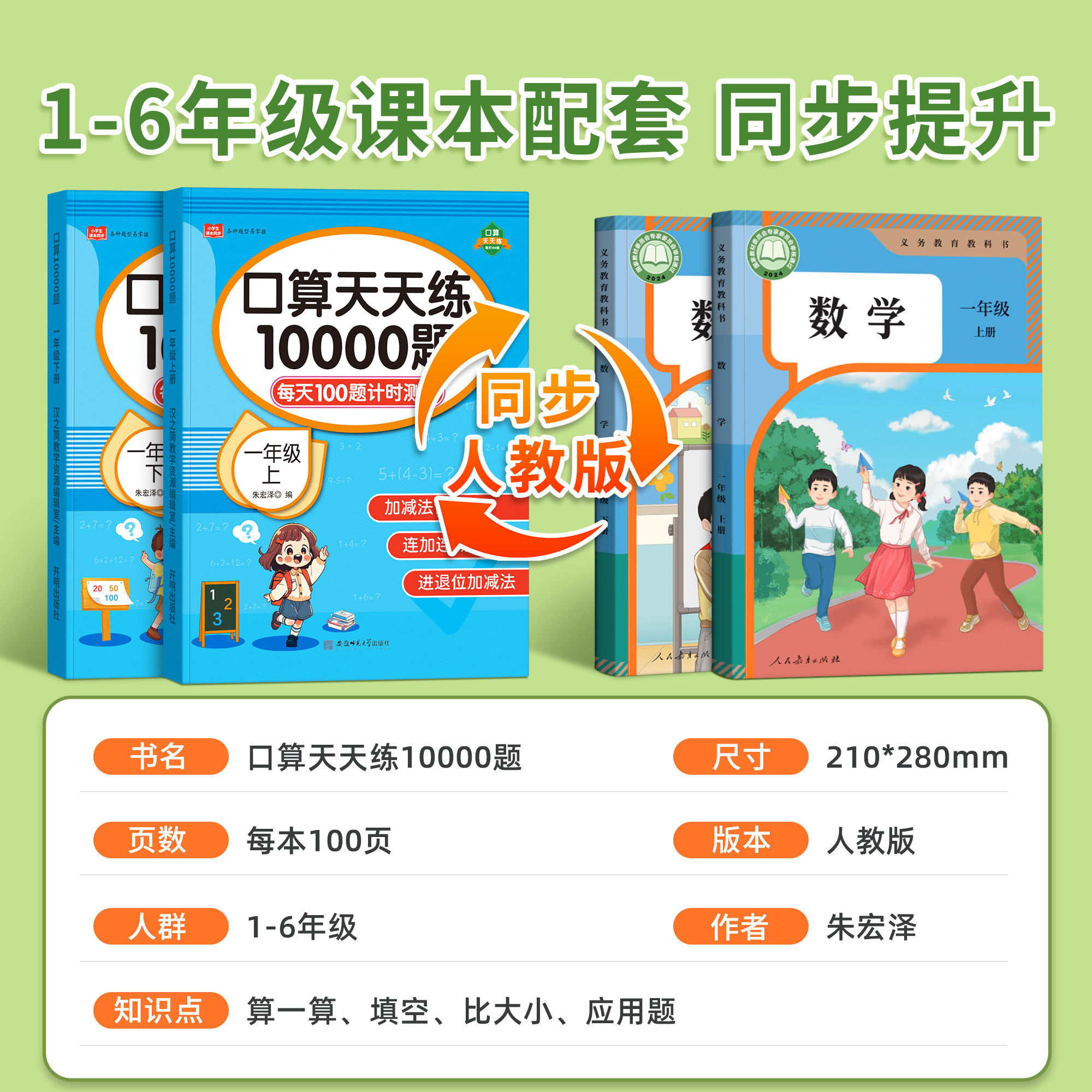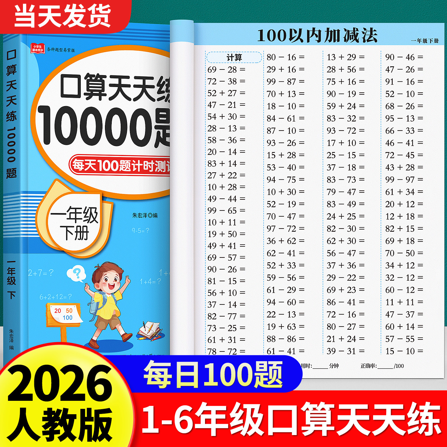 口算天天练一二三四五六年级上册下册小学数学口算题卡每天一练练习册口算10000道乘法口算练习学霸口算小达人快速口算法每日100题