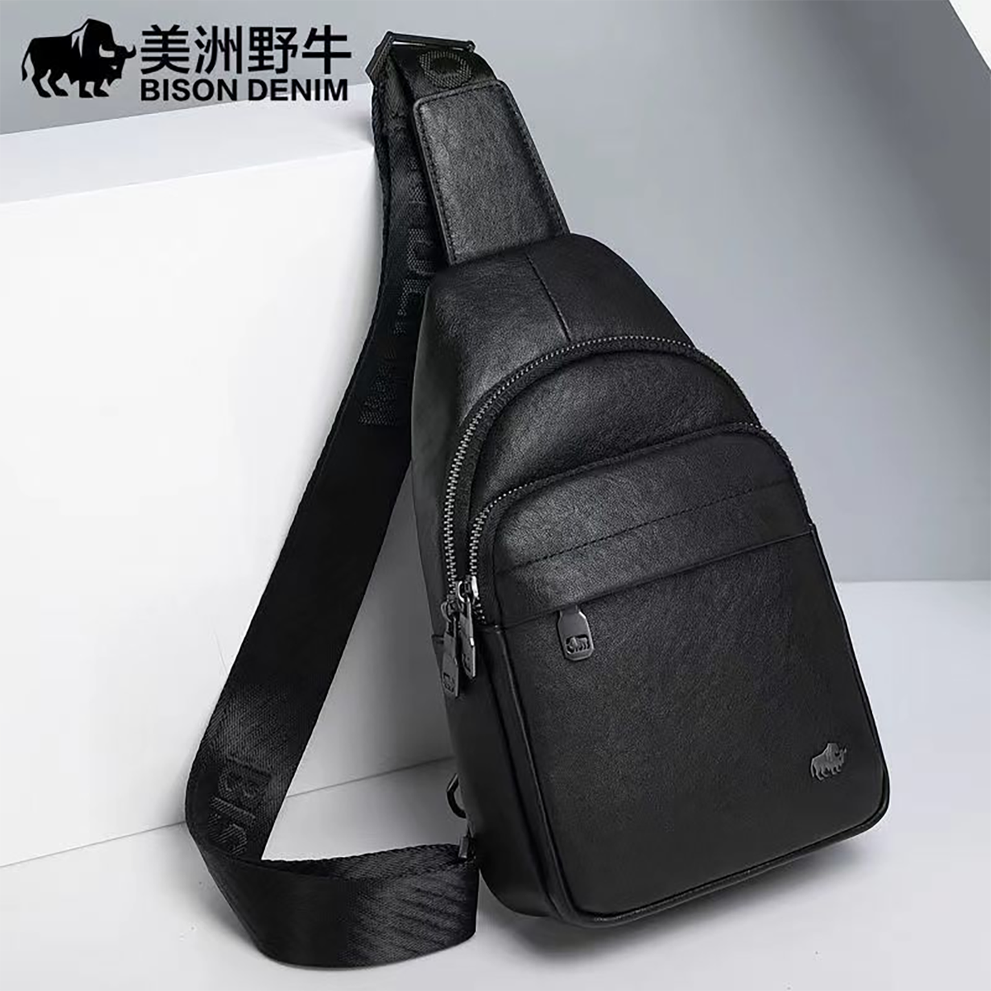 美洲野牛胸包男真皮单肩斜挎包2025新款潮牌背包头层牛皮男士包包