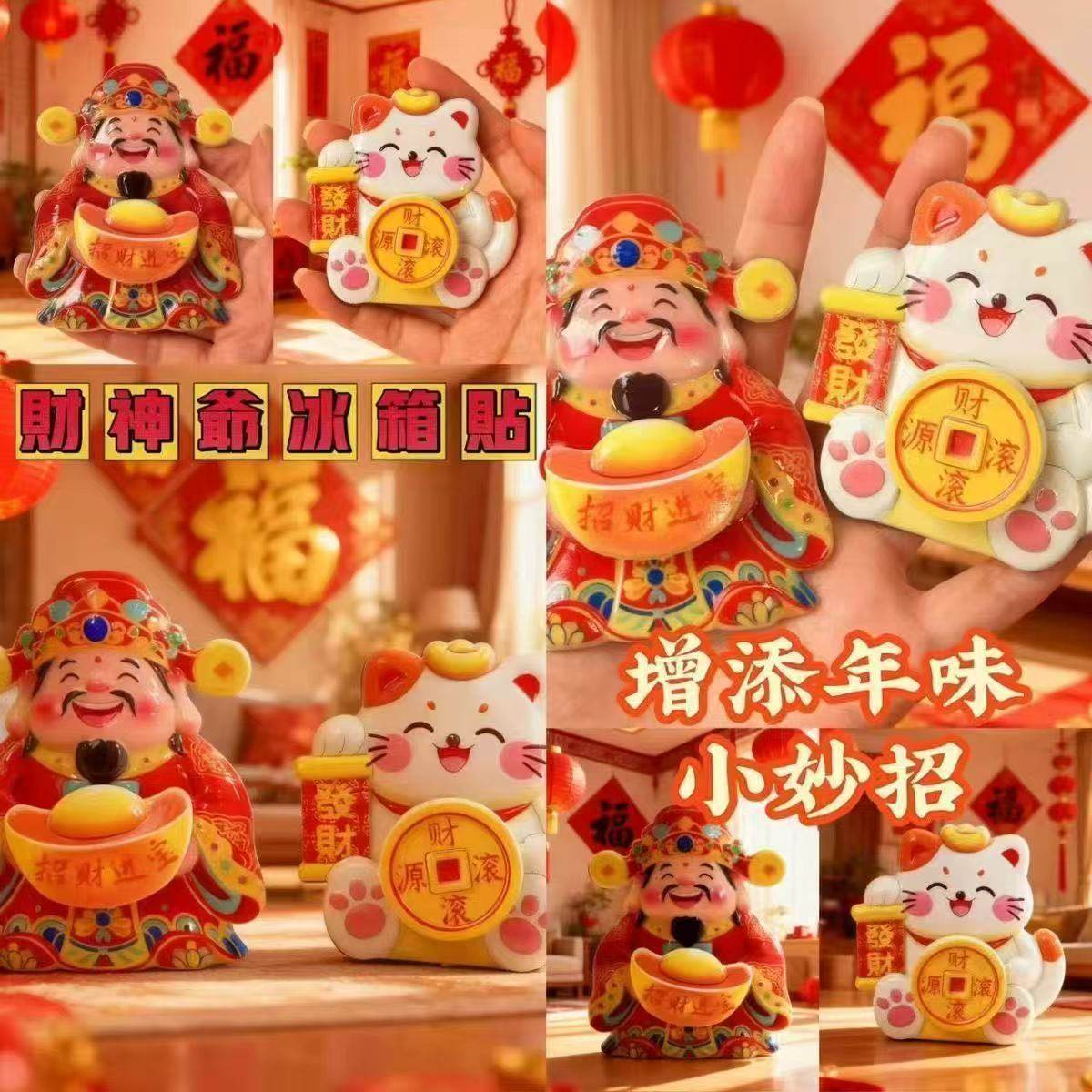 财神转钱冰箱贴陶瓷摇头招财纳福摆件饰品喜庆装饰贴招财猫冰箱贴