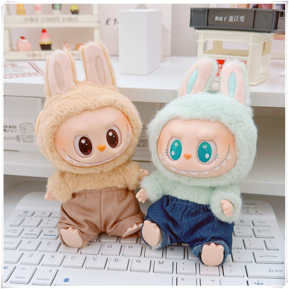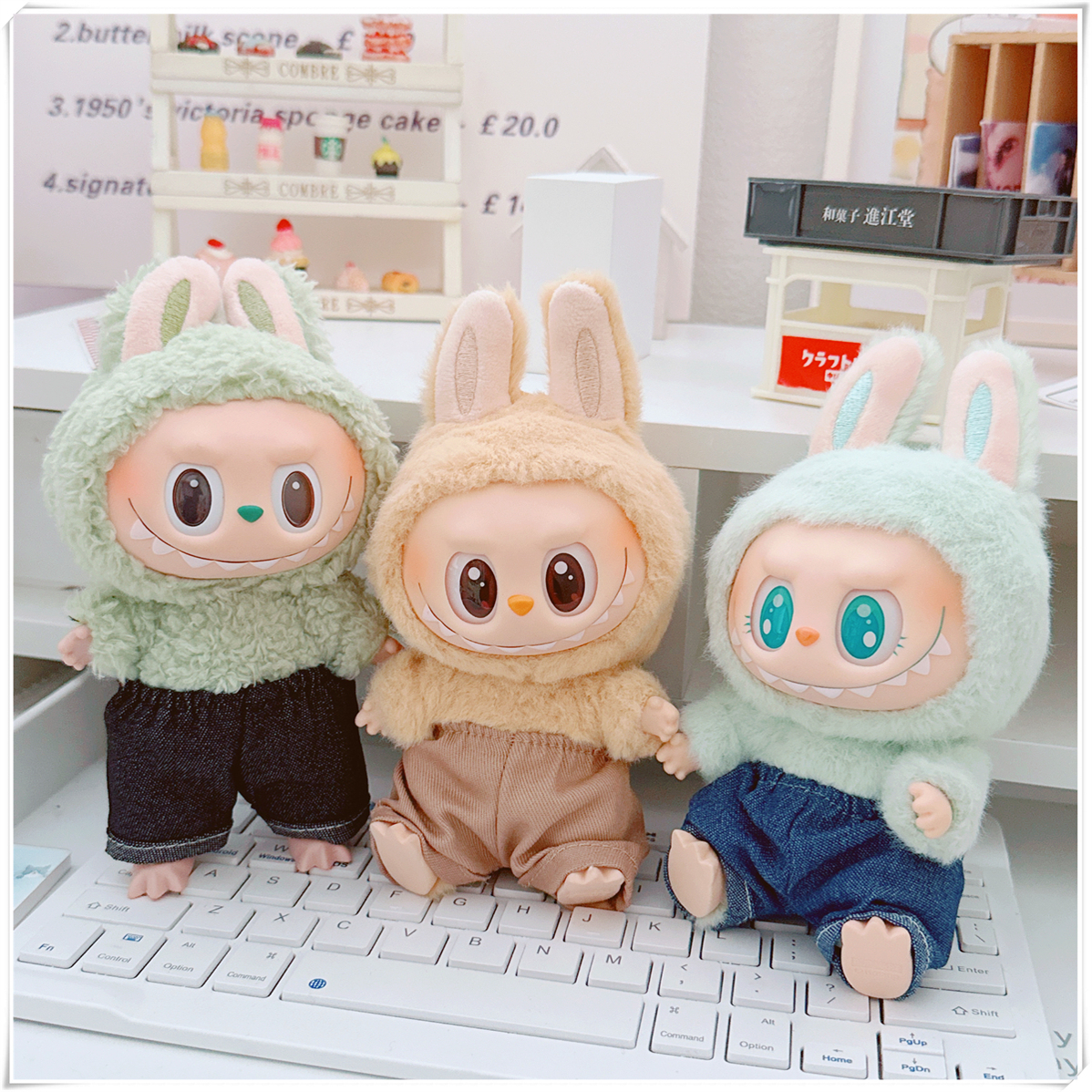 17cm拉布布labubu娃衣10cm棉花娃娃lulu猪娃三岁牛仔裤短裤制服裙