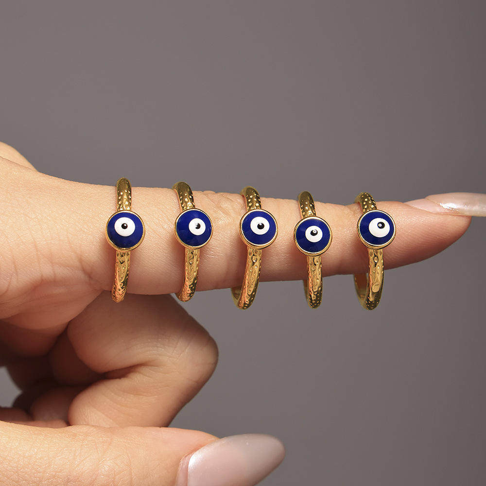 ins个性蓝眼睛指环时尚创意滴油恶魔之眼戒指女钛钢高端首饰饰品