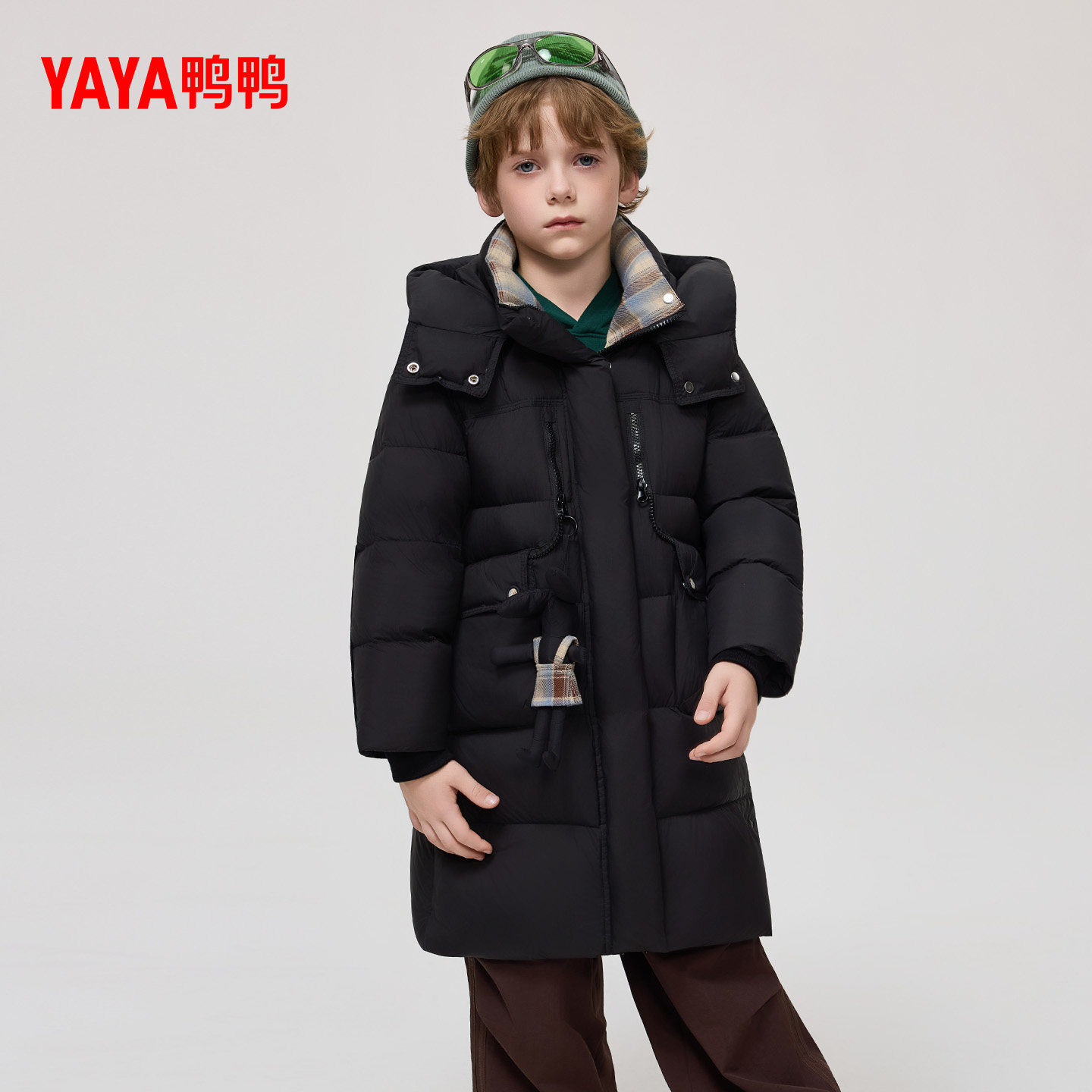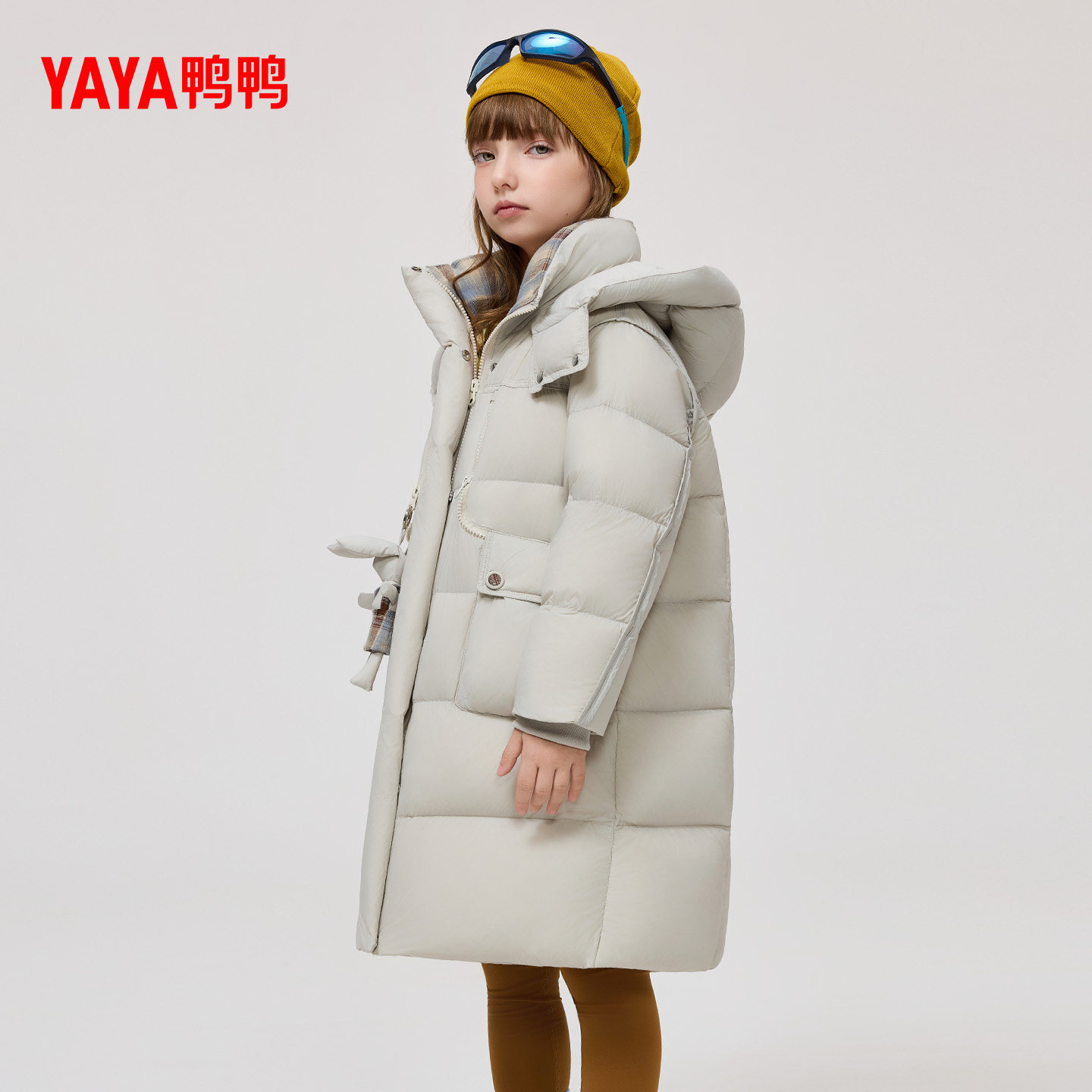 鸭鸭儿童羽绒服2025年冬季新品时尚立领连帽舒适中长款保暖外套F