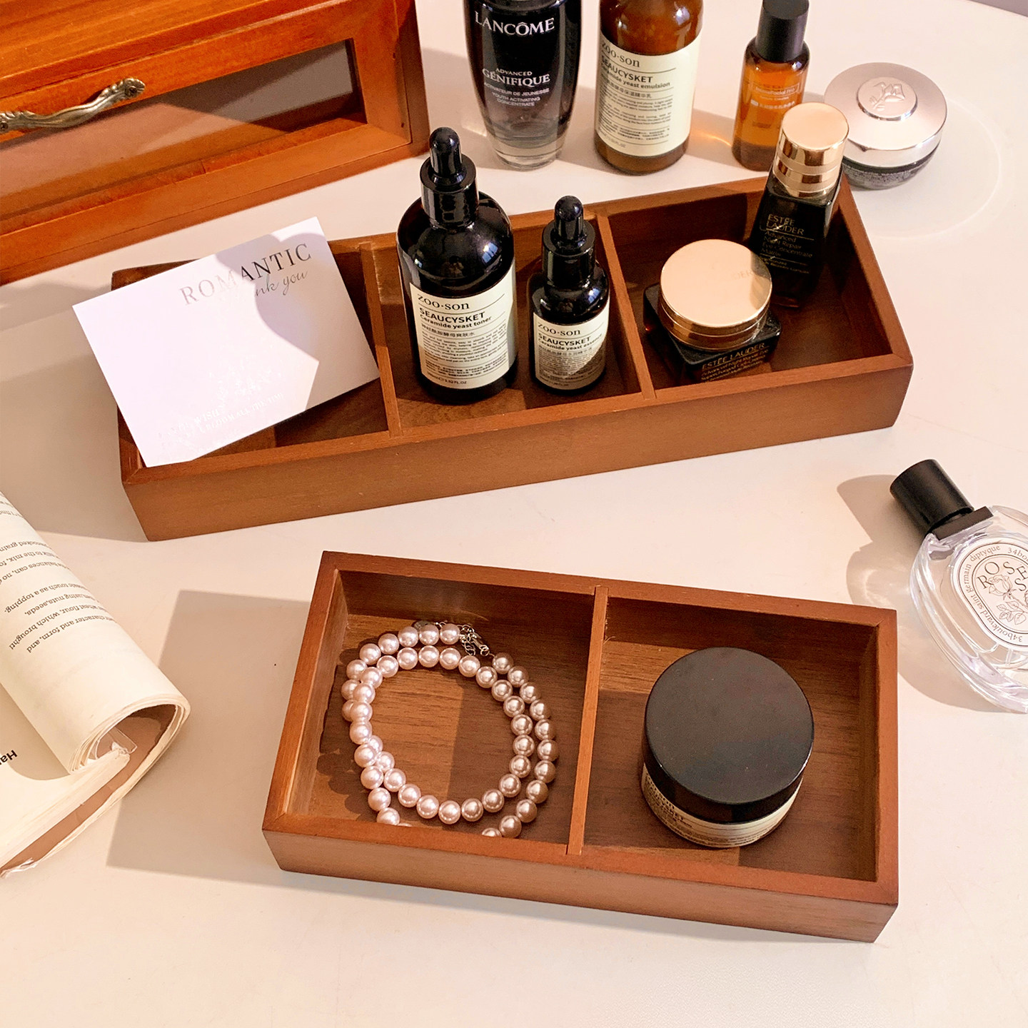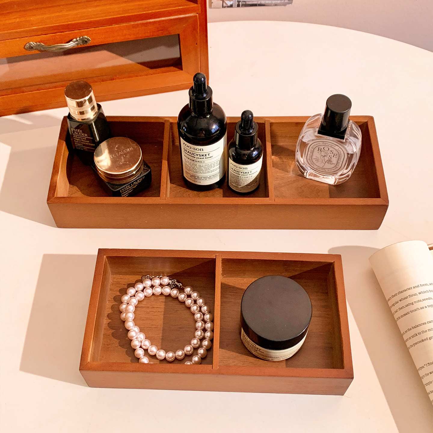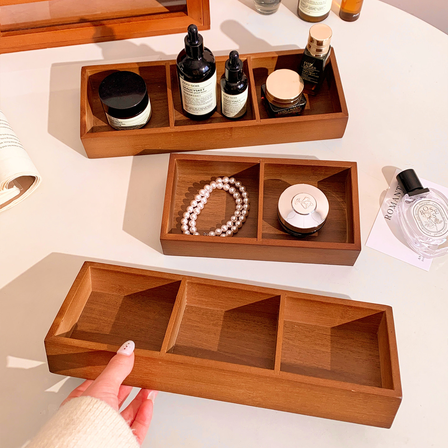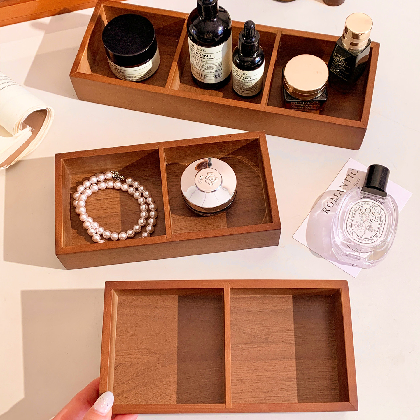 复古实木首饰盒分格桌面收纳盒置物架香薰托盘项链戒指饰品木质盘