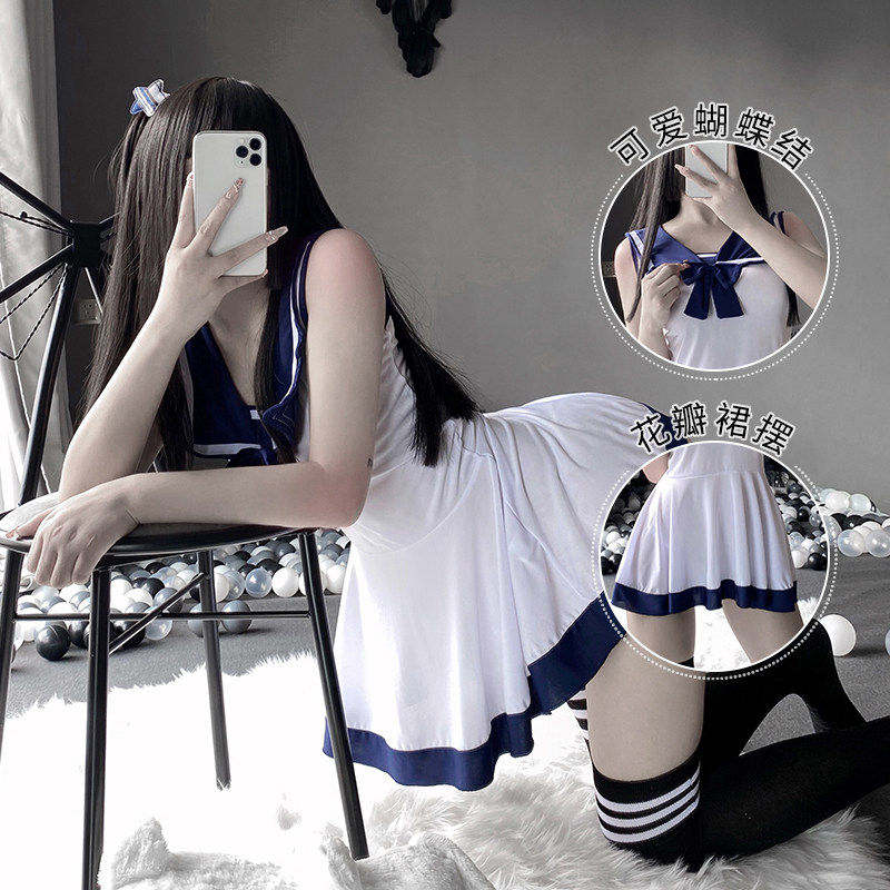 学生时代日系清纯蓝白水手服可爱软妹JK套装蝴蝶结海军风连衣裙女