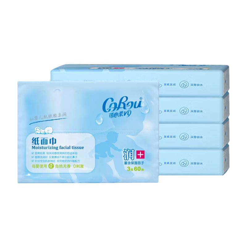 可心柔婴儿保湿柔纸巾面巾宝宝专用云柔巾抽纸60抽5包旗舰店官方