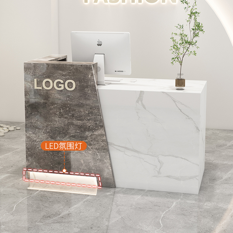 烤漆简约服装店收银台柜台时尚理发店前台接待台小型网红发光吧台