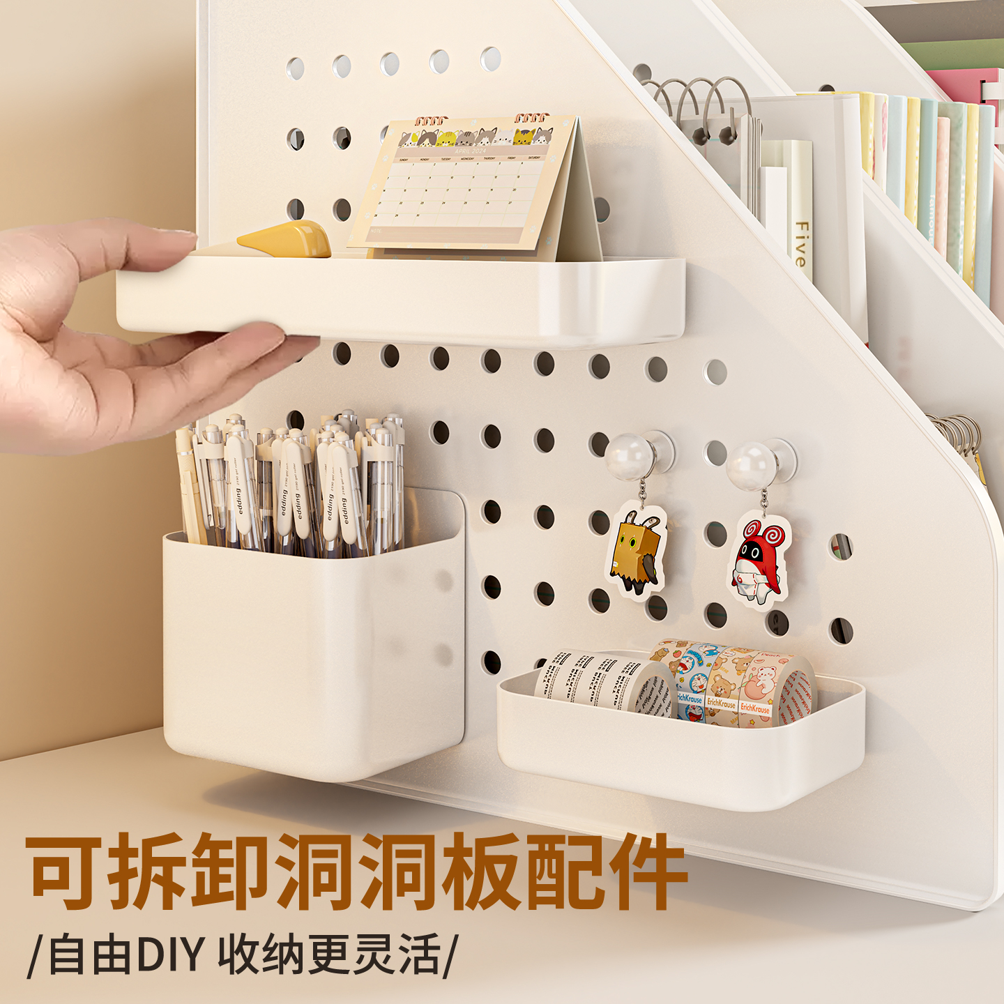 学生桌面收纳书立架洞洞板固定书本收纳盒宿舍简约书架初高中生学科分类整理神器课桌本子置物架笔筒分层隔板
