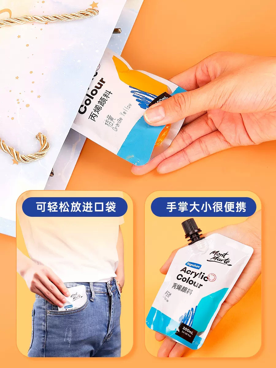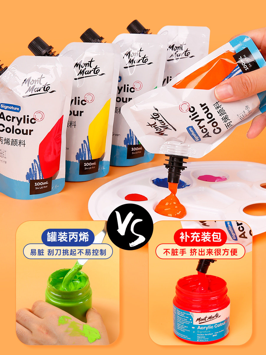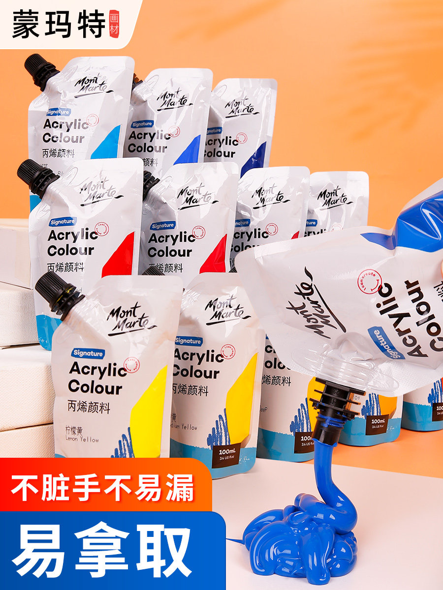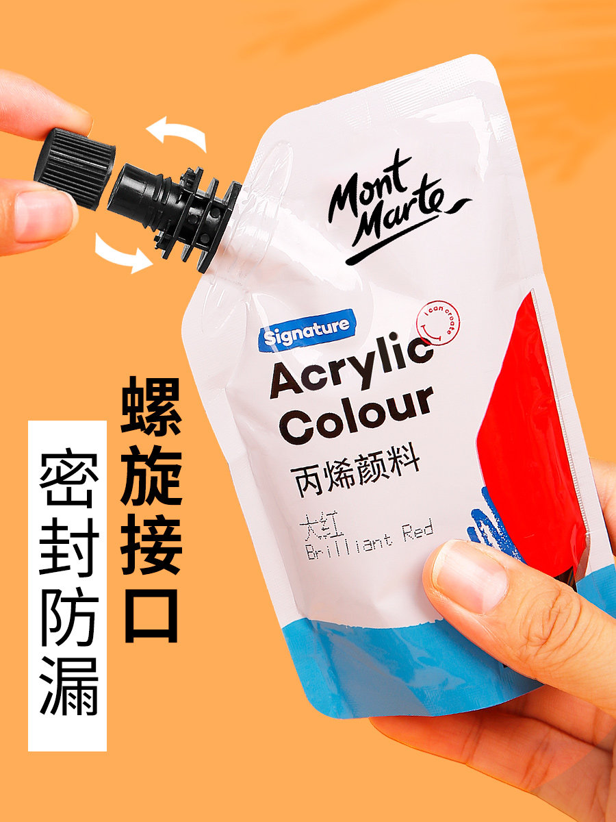 蒙玛特丙烯颜料100ml袋装自立袋手绘涂鸦彩绘DIY石头T恤球鞋防水纺织颜料画画染料手工墙绘补充包补充装便携