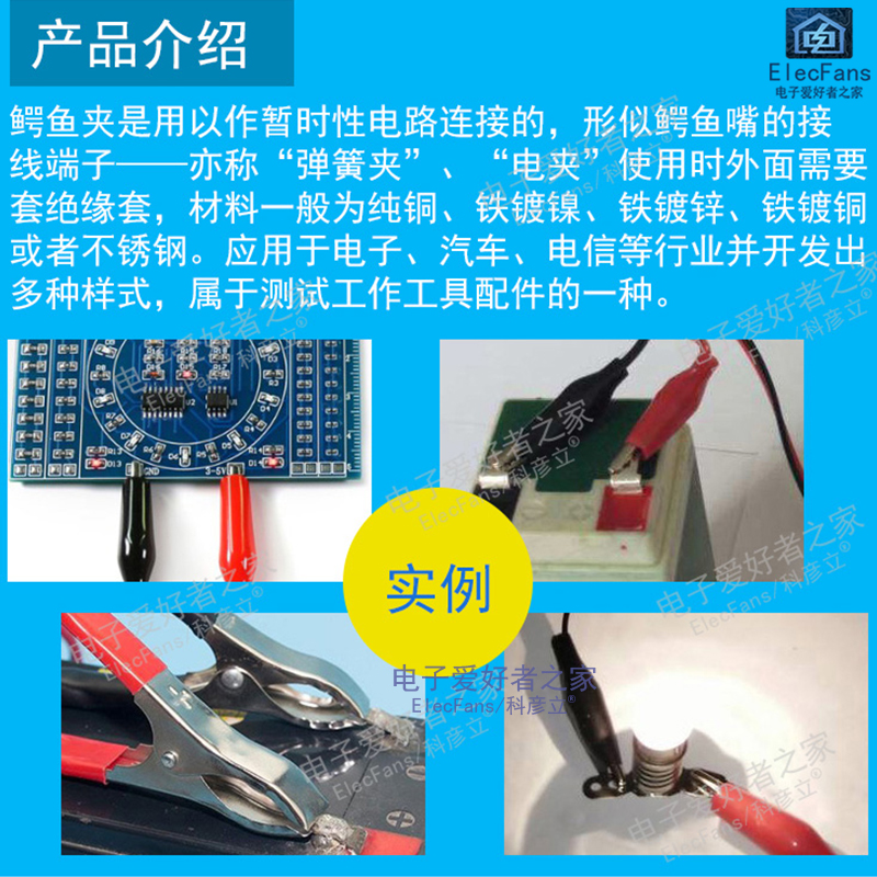 鳄鱼夹测试实验大小号带护套万能表电工搭接线铁镀镍连接线电线夹