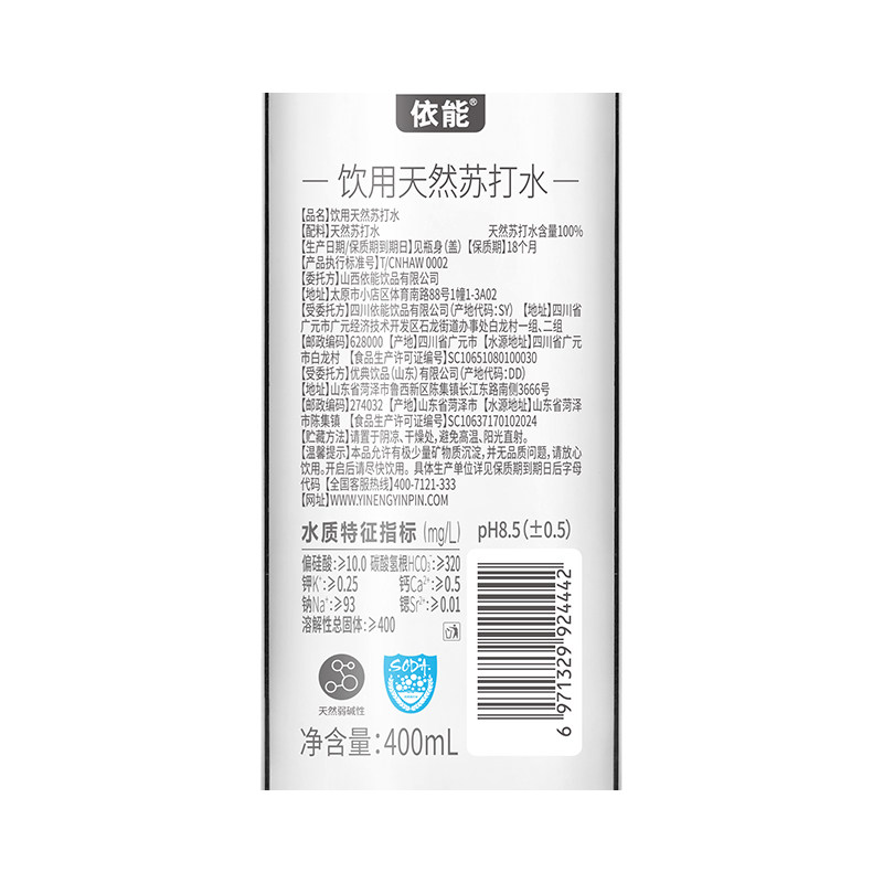 依能世珍泉饮用天然苏打水400ml*15瓶无糖弱碱性水整箱非矿泉水