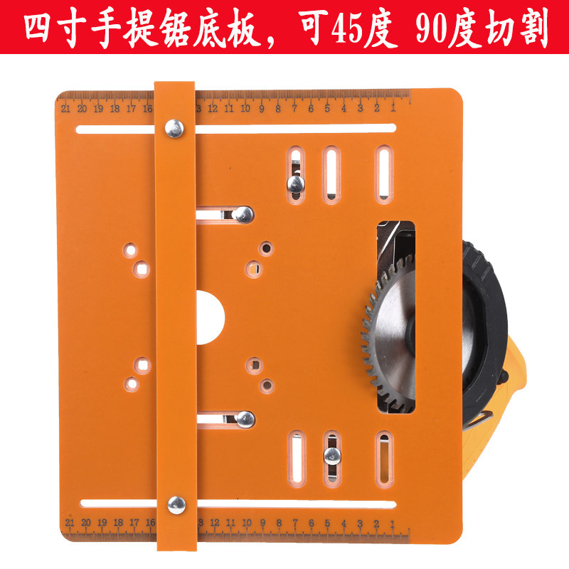 木工切割机4寸手提锯通用 可斜切四寸云石机底板靠山底座激光刻度